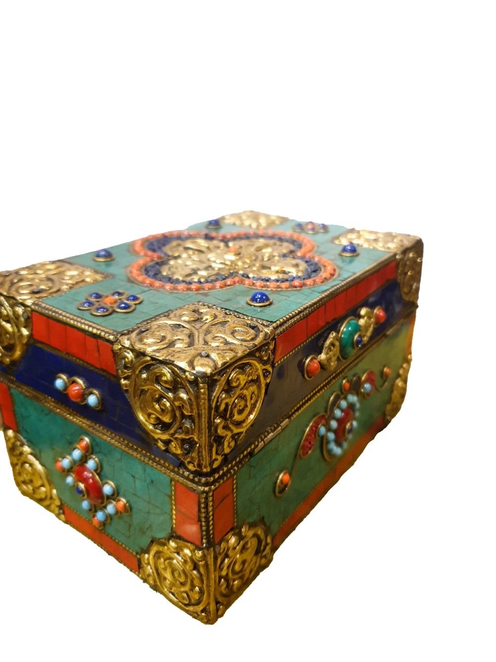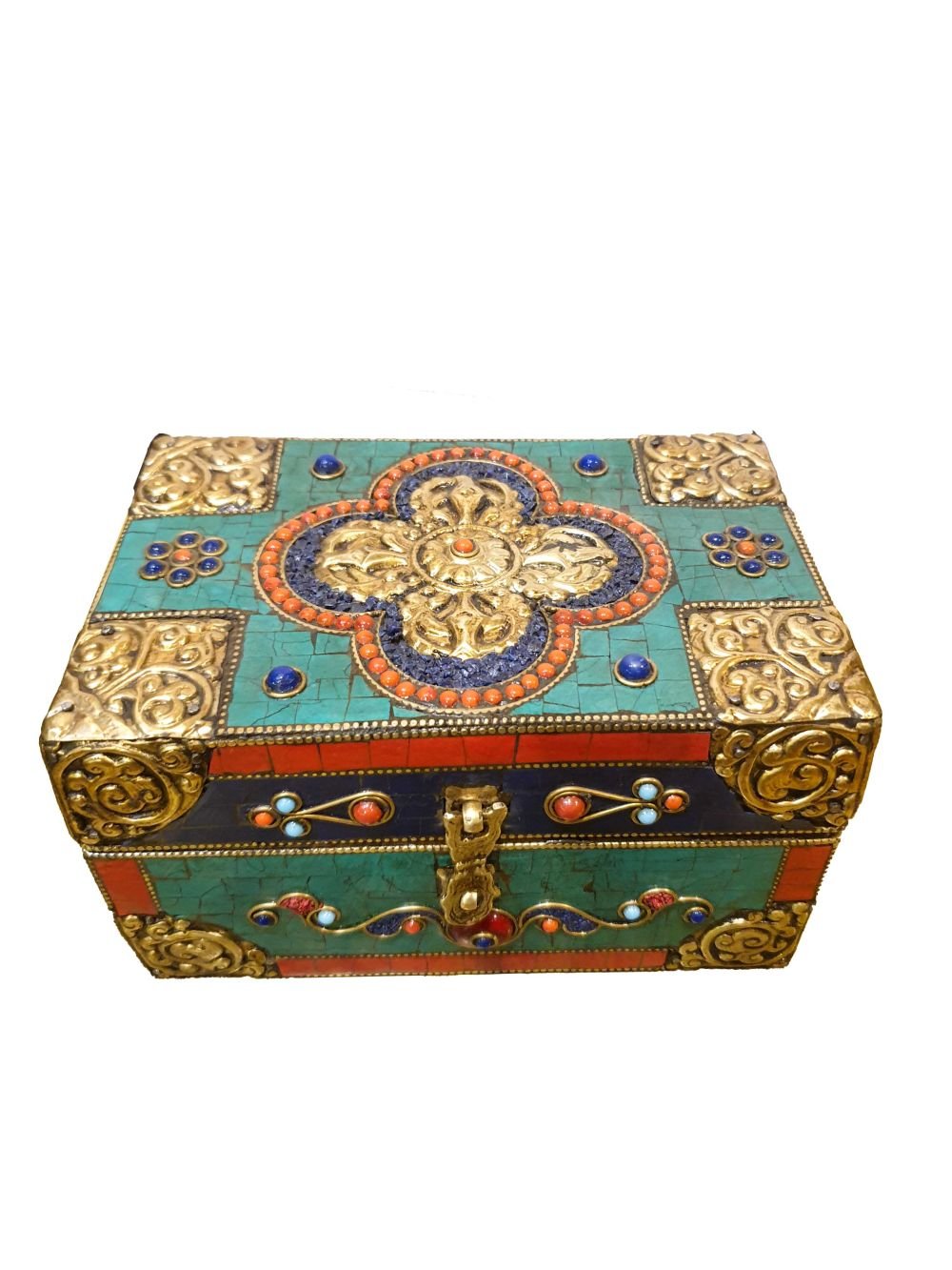 Handmade Tibetan Box Traditional Color, Stone Setting |