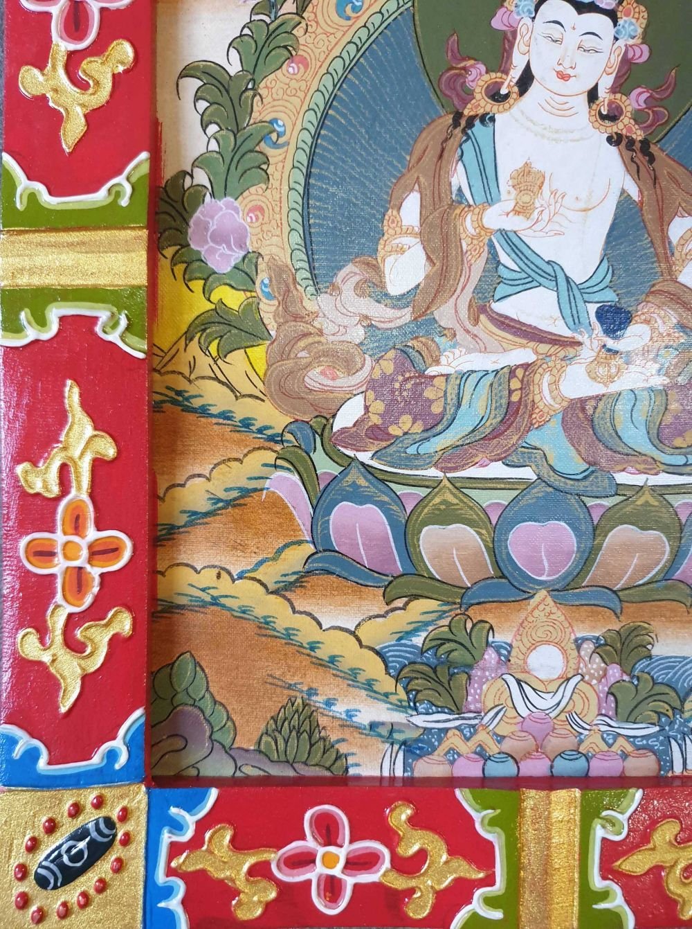 A thangka, also known as tangka, thanka, or tanka, is a vibrant and intricate Tibetan Buddhist painting that serves as a visual representation of spiritual teachings. Crafted with meticulous detail on cotton or silk appliqué, thangkas depict a wide range of subjects including Buddhist deities, sacred scenes, mandalas, and narrative stories. These sacred artworks are traditionally kept unframed and rolled up for storage, resembling ancient scrolls. To protect their delicate nature, thangkas are mounted on textile backings and often adorned with a silk cover on the front. Proper preservation in dry environments is crucial to maintain the integrity and longevity of the silk. Read More