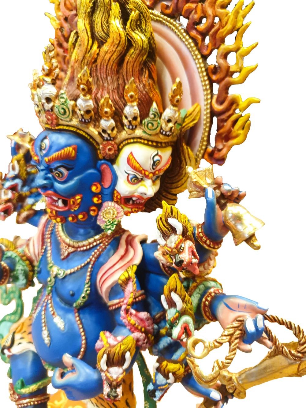 Master Quality, Buddhist Statue of Akash Bhairav, Traditional Color, Ucchusma Vajrapala , Fierce Guardian of Wisdom, Defending Against Ignorance and Evi
