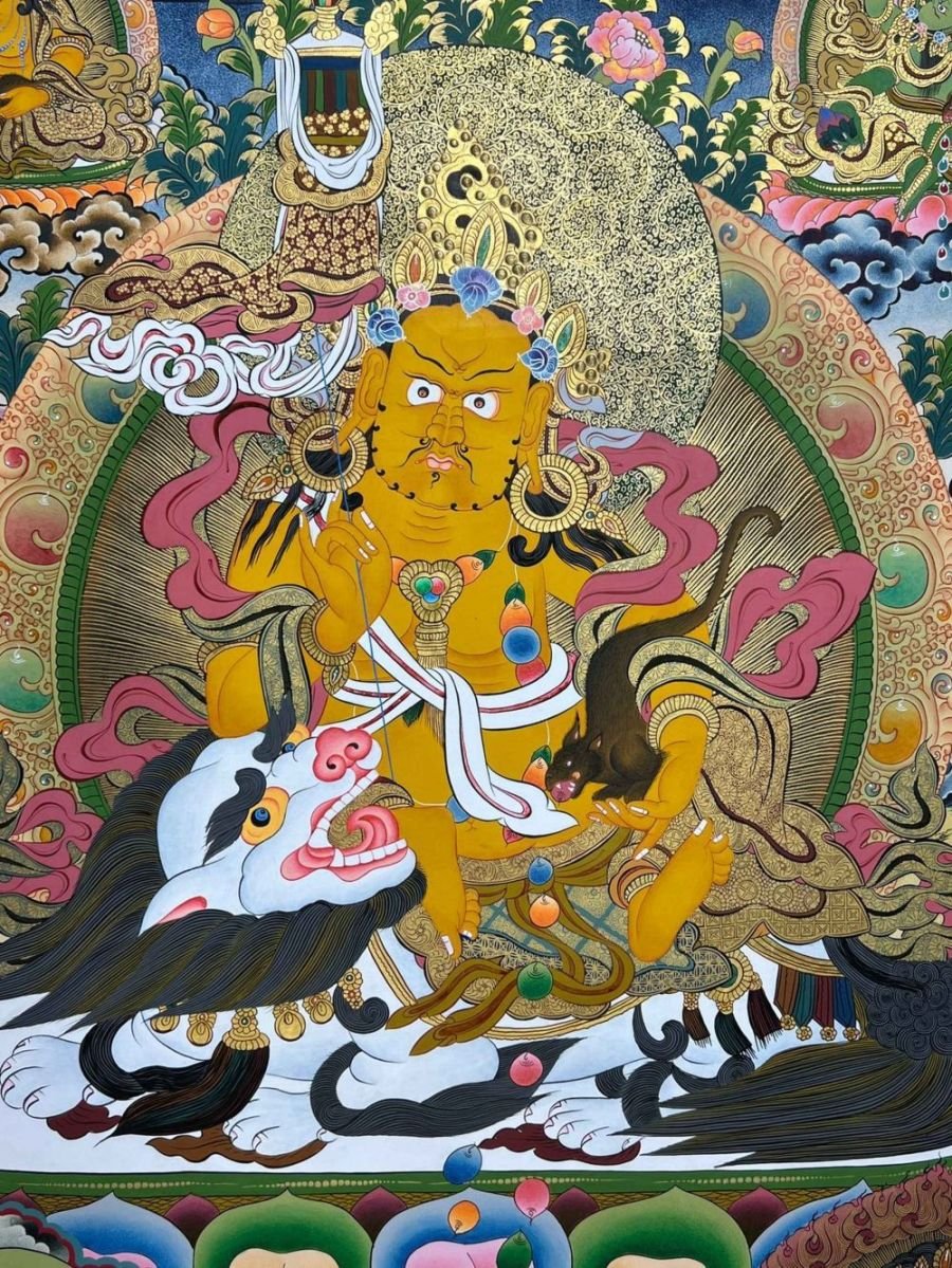 Buddhist Handmade Thangka of Jambhala: Namtose, Hand Painted , God of Wealth and Prosperity