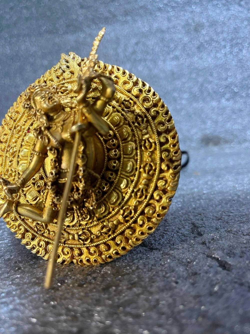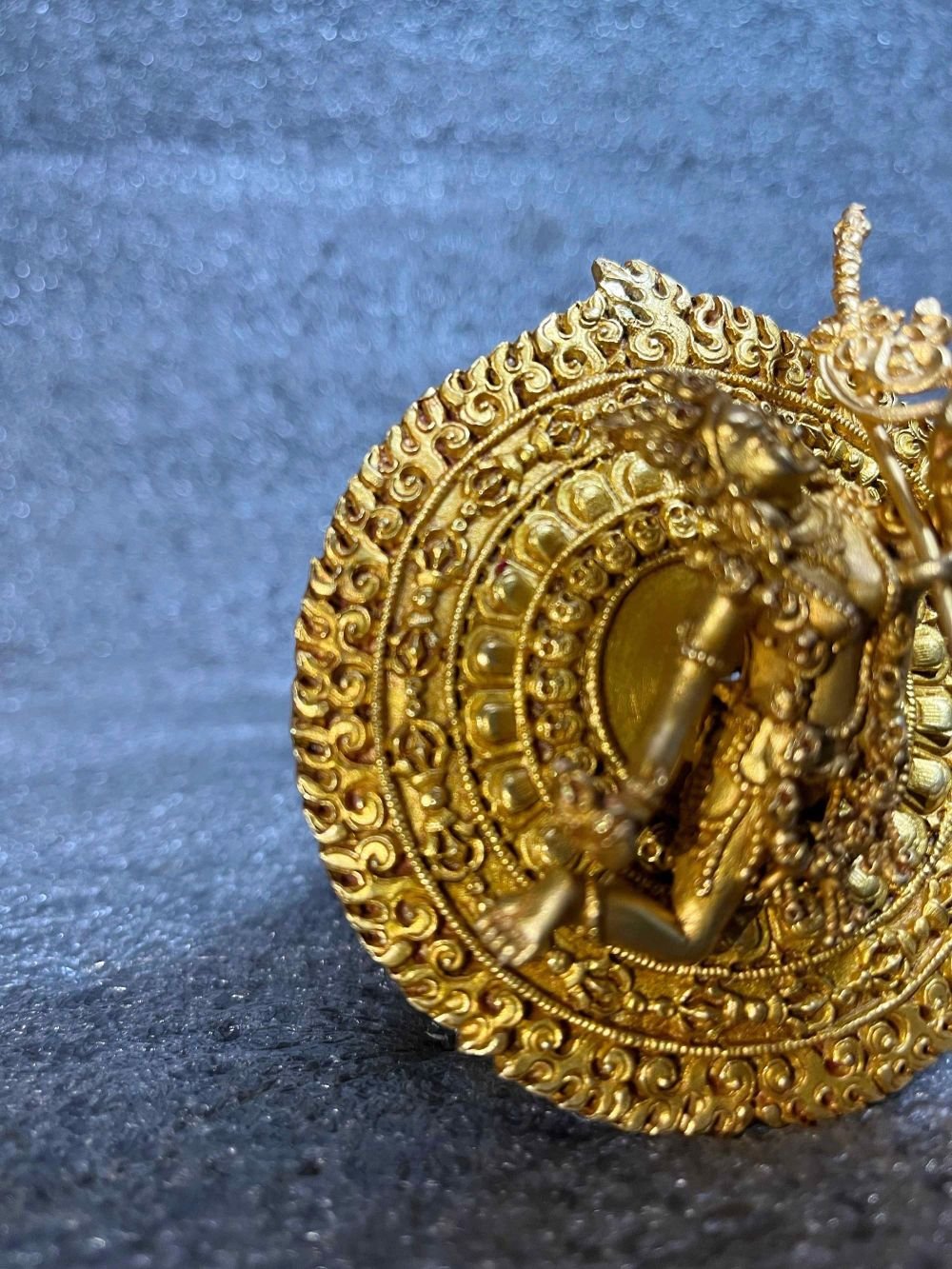 Buddhist Round Miniature Statue of Akash Yogini, Full Gold Plated , Cosmic Wisdom, Transformation, and Spiritual Power