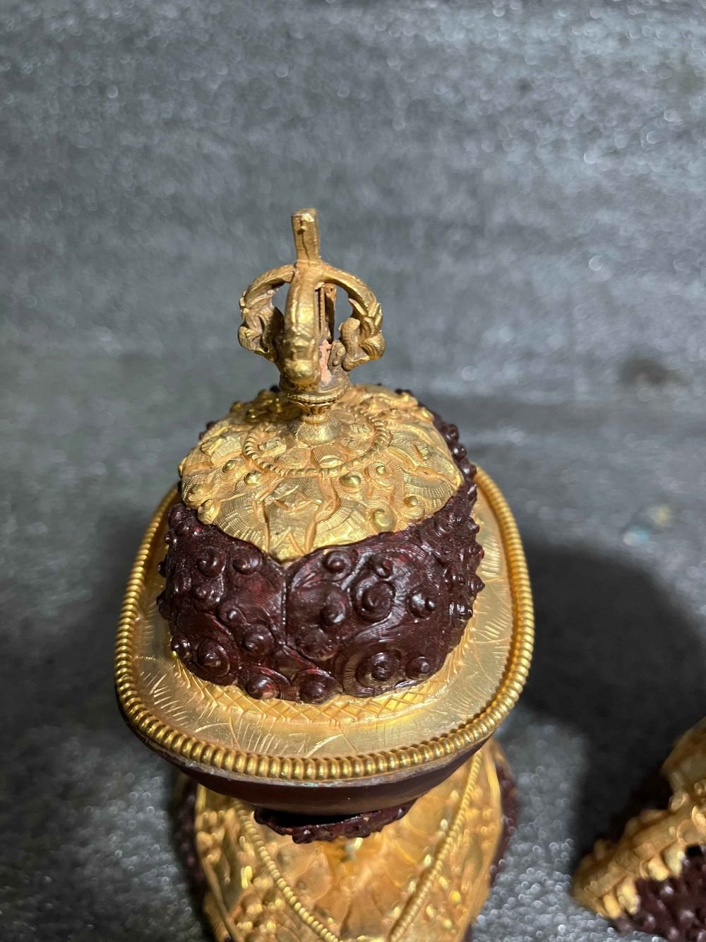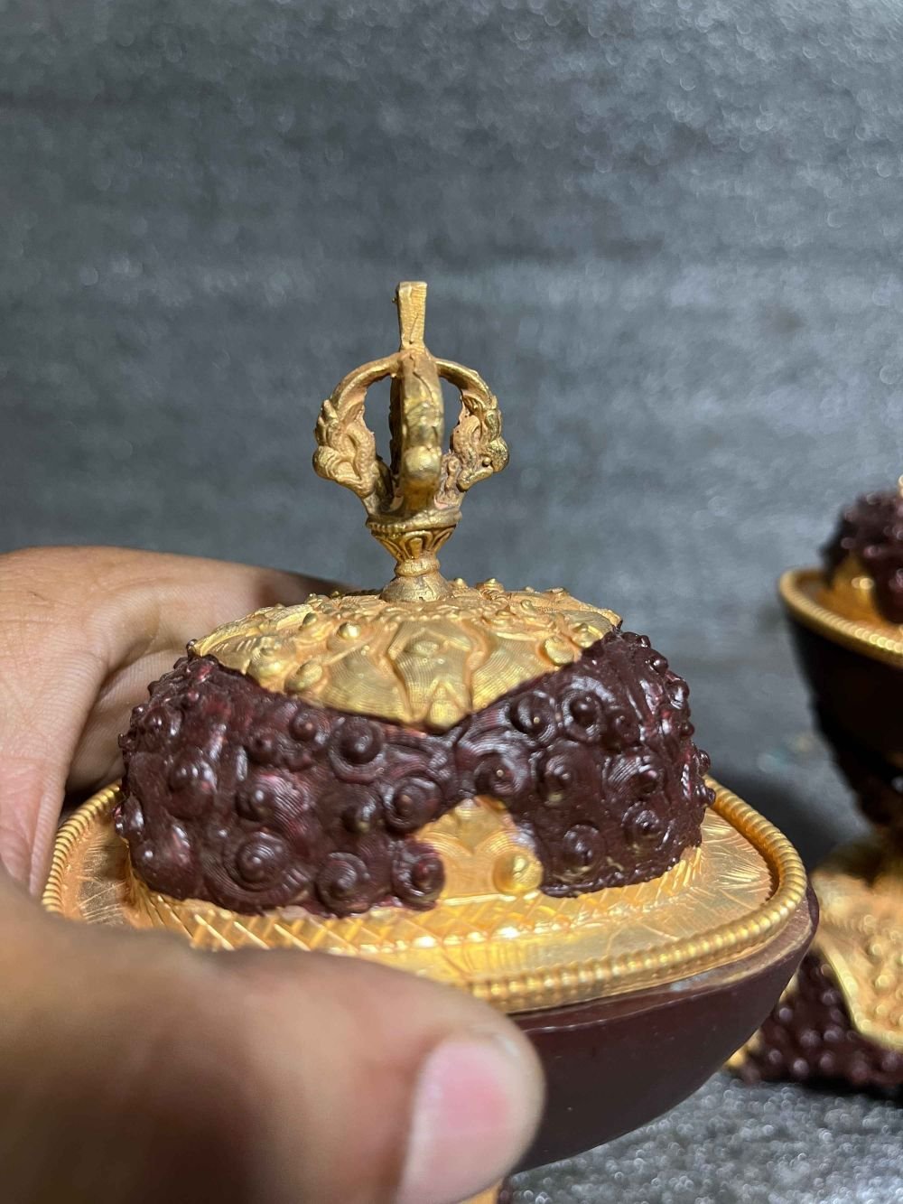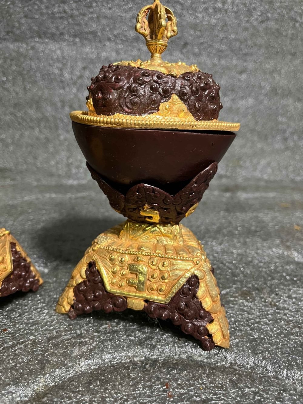Buddhist Handmade Kapala Pair, Partly Gold Plated with Extra Gold