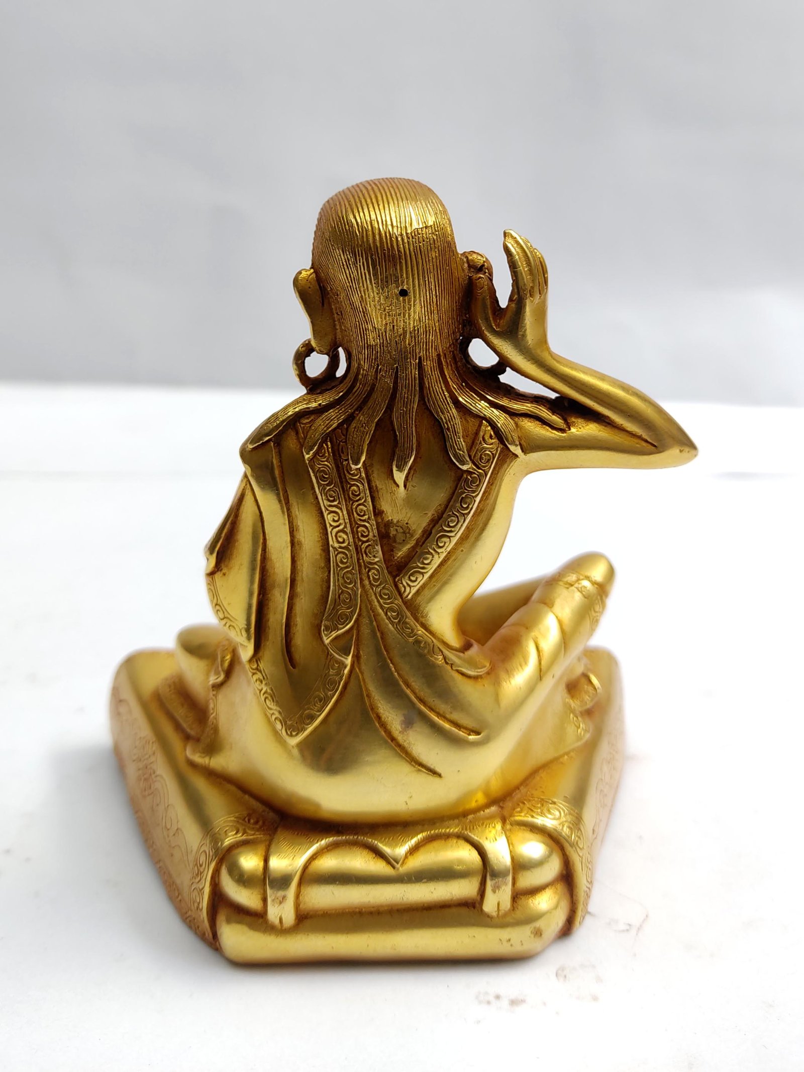 Buddhist Miniature Statue of Milarepa, Full Gold Plated , The great yogi, symbol of perseverance and enlightenment through hardship