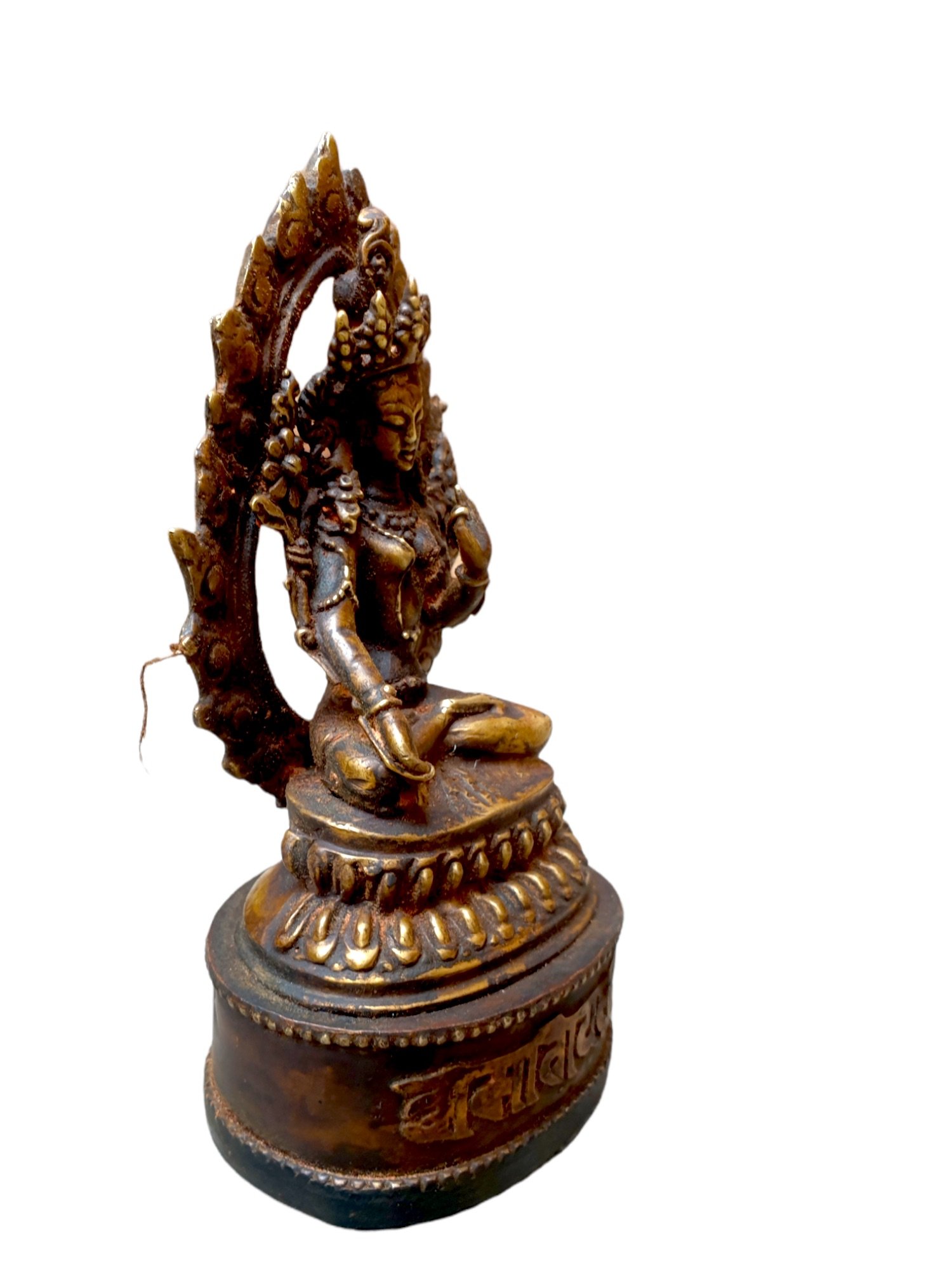 This is an antique patina-finished White Tara. This is not an antique statue. It is just an antique patina finish. This White Tara is a testament to the artisan's mastery of the art of aging. Its antique patina has been meticulously crafted to give the appearance of an aged statue, showcasing the artist's unique techniques and skills. Through undisclosed processes and careful aging treatments, the White Tara undergoes a transformation that captures the essence of time and history. Read More