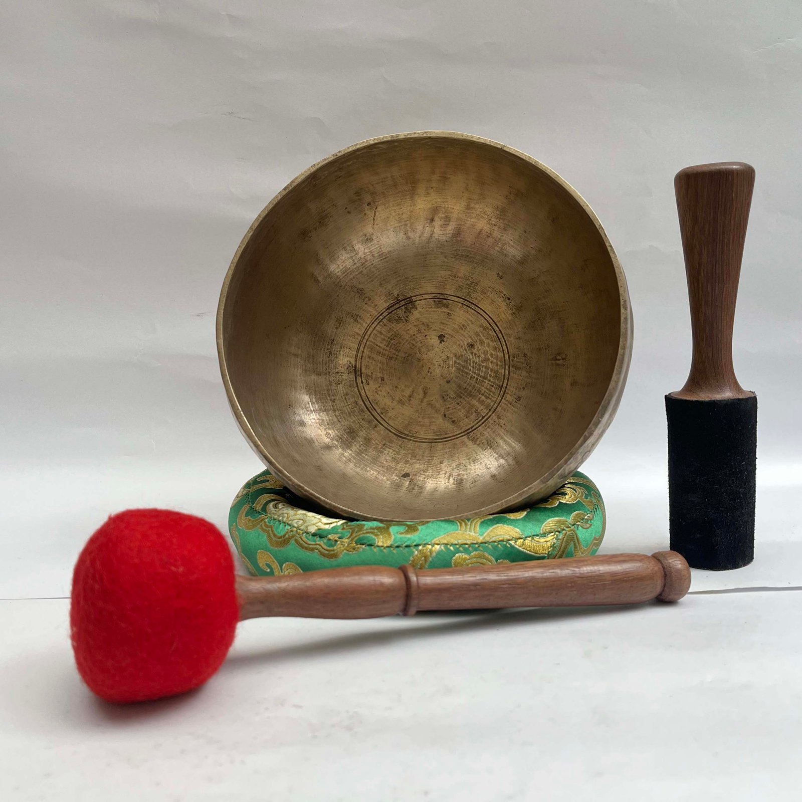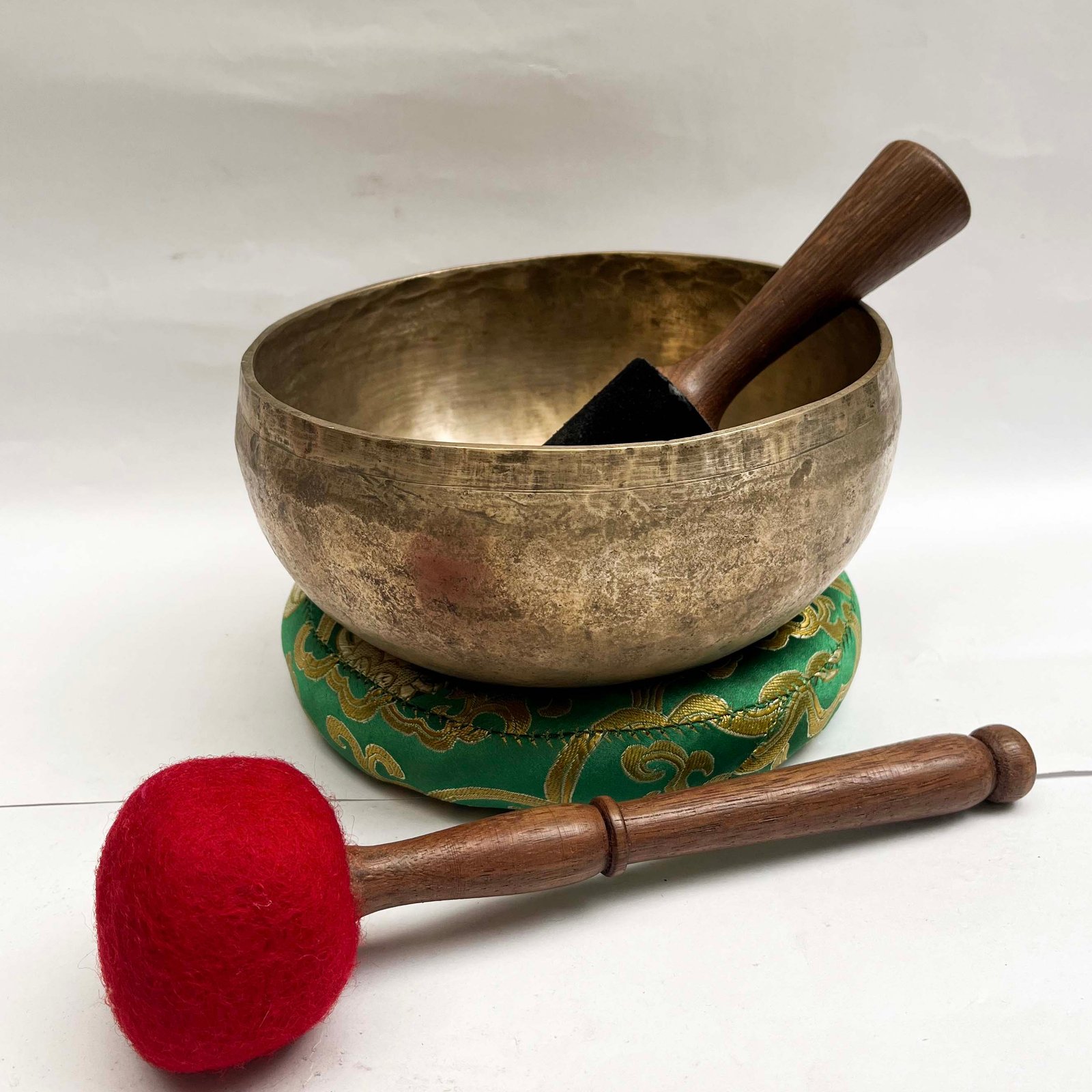 The Jambati Singing Bowl you are purchasing includes a cushion, a wooden playing mallet, and a felt-hitting mallet for playing the bowl. If you require additional accessories, you can browse the options above and purchase them separately. Should you have any further questions or need assistance, please don't hesitate to let us know. Read More