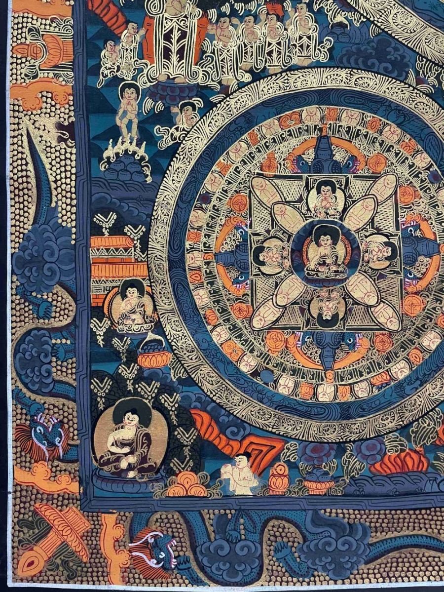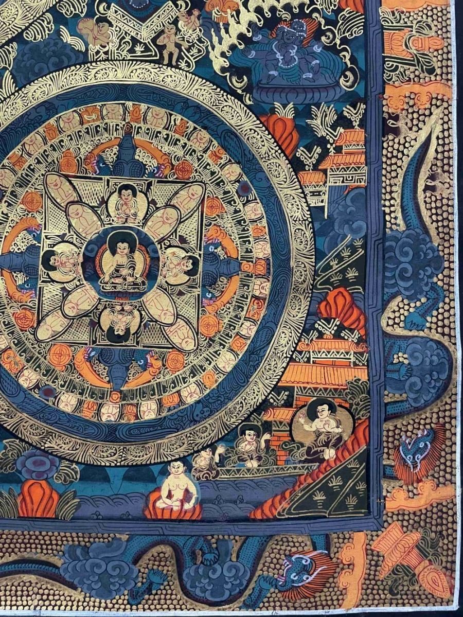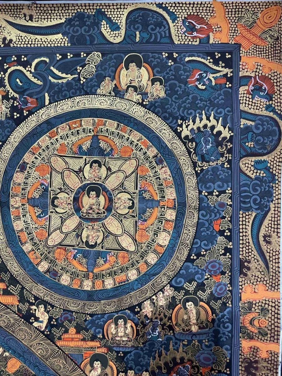 Mandala Thangka painting is a revered form of sacred art in Buddhism, characterized by intricate and vibrant depictions on cotton or silk. These paintings often feature a central deity or Buddha figure surrounded by meticulously crafted symmetrical patterns, geometric designs, and symbolic elements. Mandala Thangkas serve as visual aids for meditation and spiritual growth, guiding practitioners towards inner peace, harmony, and enlightenment. Through their precise brushwork and rich symbolism, these artworks invite viewers to contemplate the profound spiritual journey within themselves, fostering mindfulness, concentration, and a deeper connection with the universal truths of Buddhism. Read More