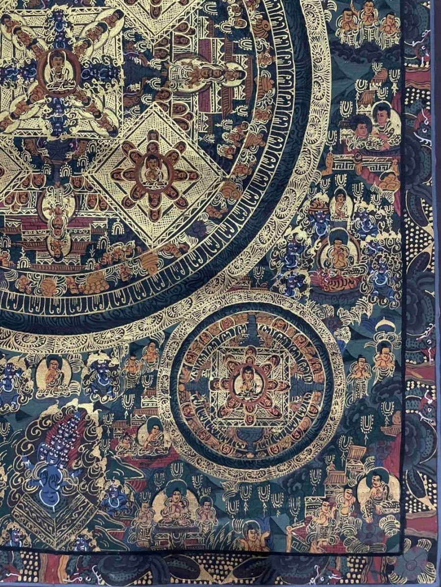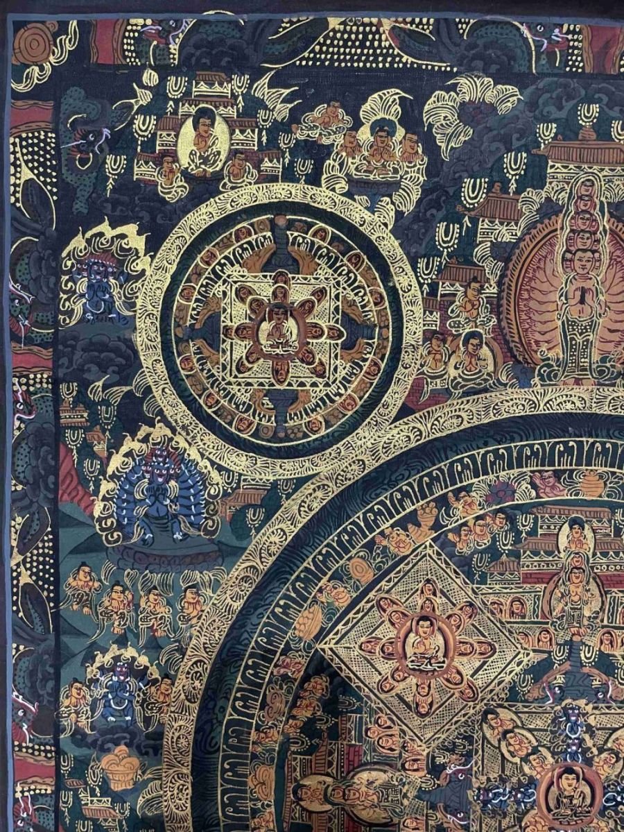 A thangka, also known as tangka, thanka, or tanka, is a vibrant and intricate Tibetan Buddhist painting that serves as a visual representation of spiritual teachings. Crafted with meticulous detail on cotton or silk appliqué, thangkas depict a wide range of subjects including Buddhist deities, sacred scenes, mandalas, and narrative stories. These sacred artworks are traditionally kept unframed and rolled up for storage, resembling ancient scrolls. To protect their delicate nature, thangkas are mounted on textile backings and often adorned with a silk cover on the front. Proper preservation in dry environments is crucial to maintain the integrity and longevity of the silk. Read More