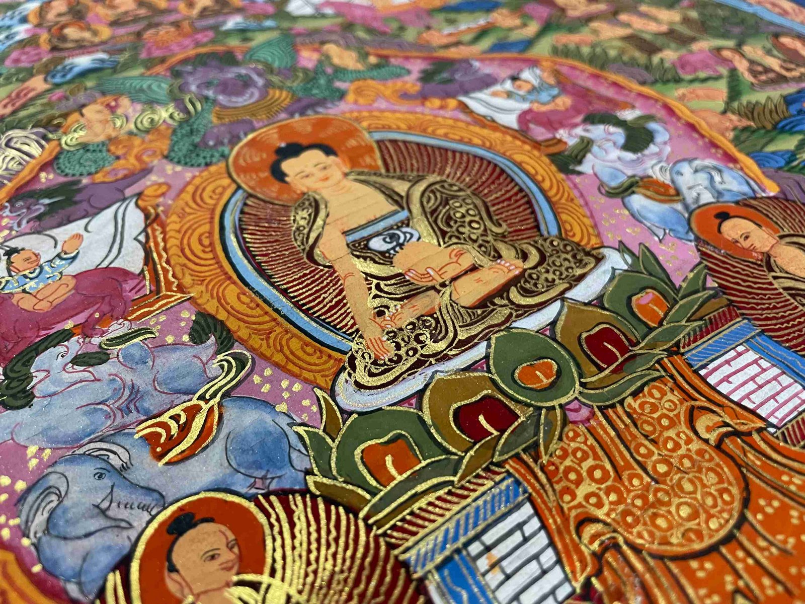 Buddhist Handmade Thangka Painting of Buddha Life Story, Real Gold, Hand Painted |