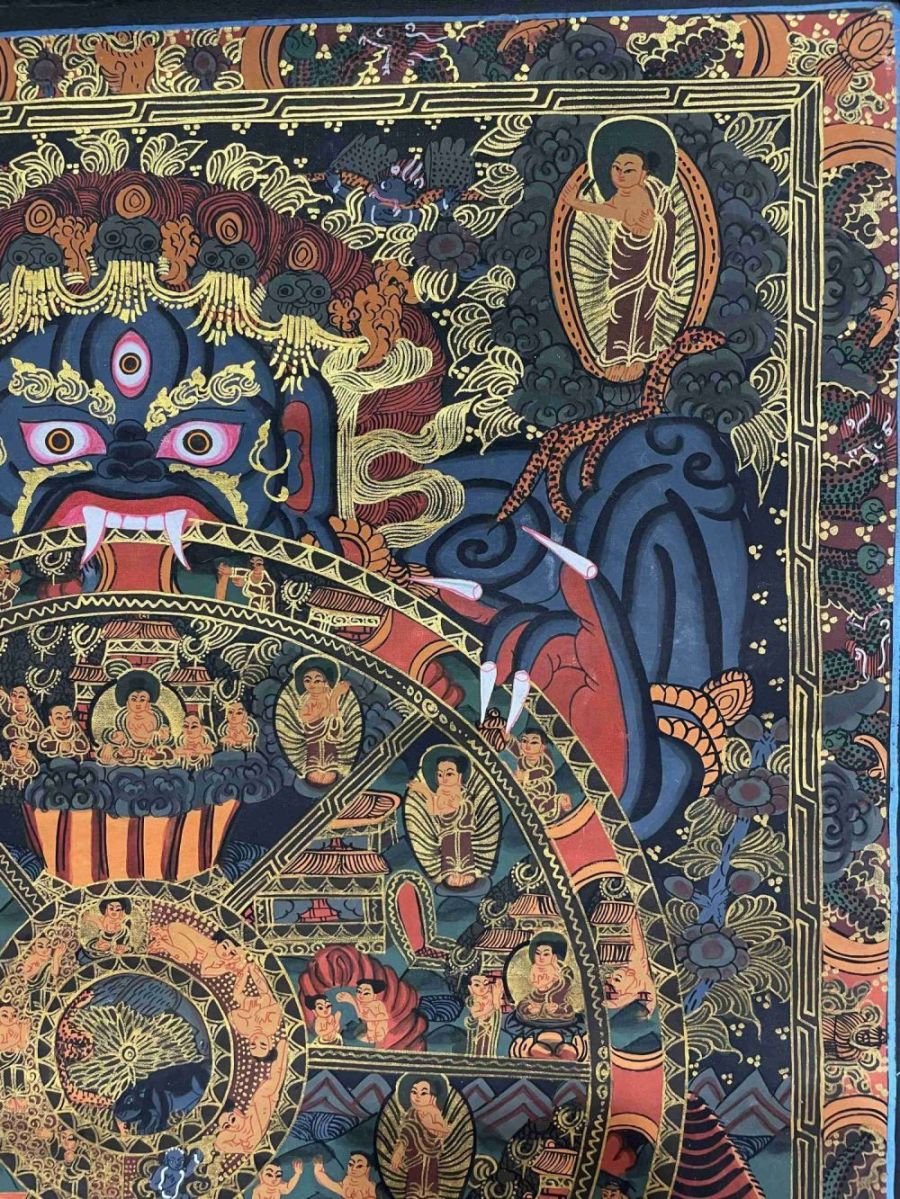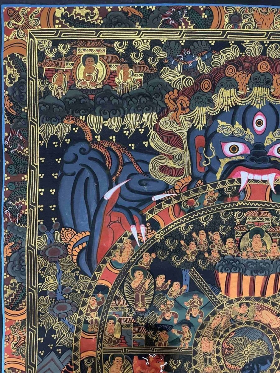 Buddhist Handmade Thangka Painting of Wheel of Life, Real Gold, Hand Painted