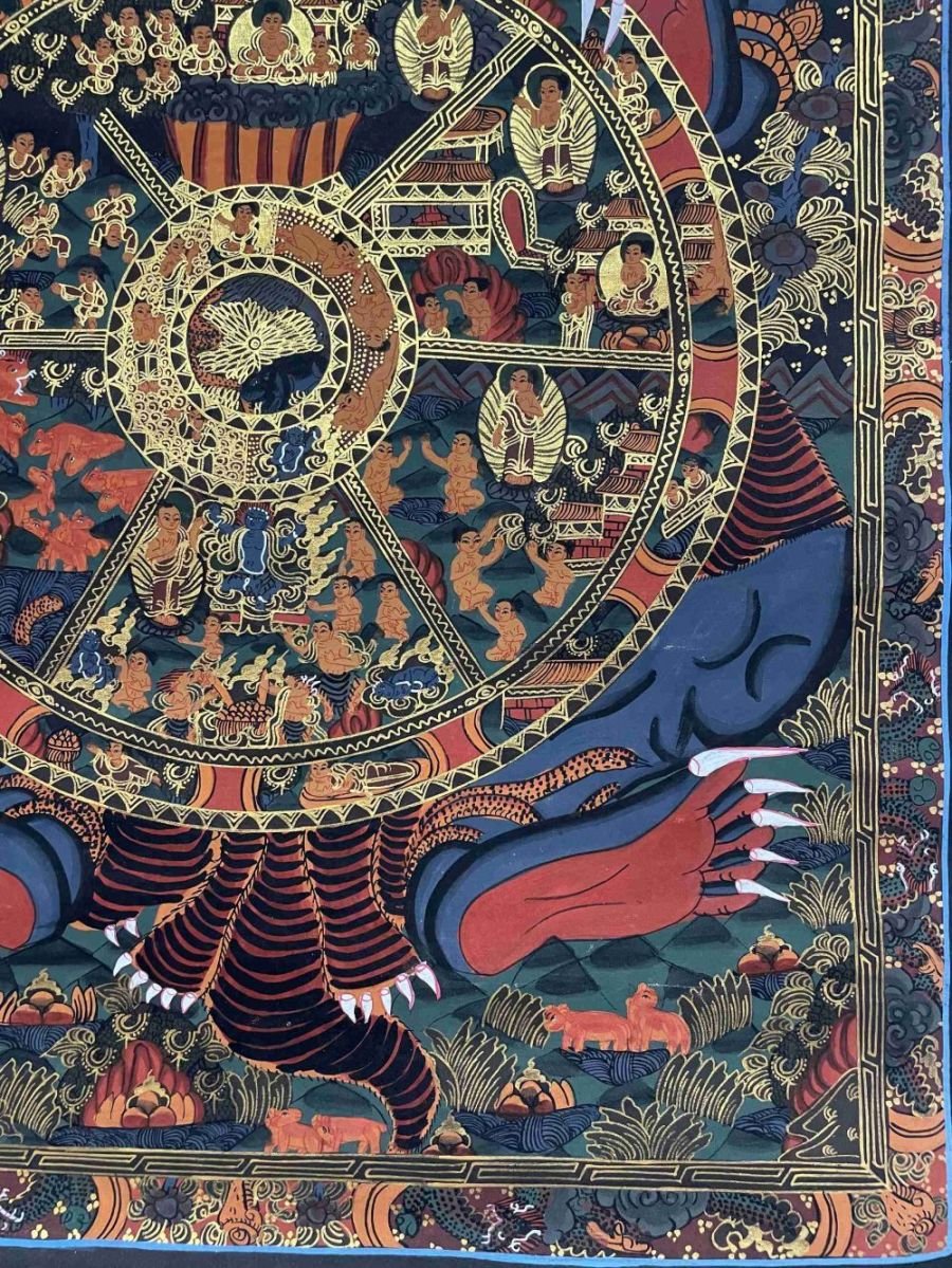 This figure is most commonly depicted as Yama, the lord of death. Regardless of the figure depicted, the inner meaning remains the same-that the entire process of cyclic existence (samsara) is transient; everything within this wheel is constantly changing.