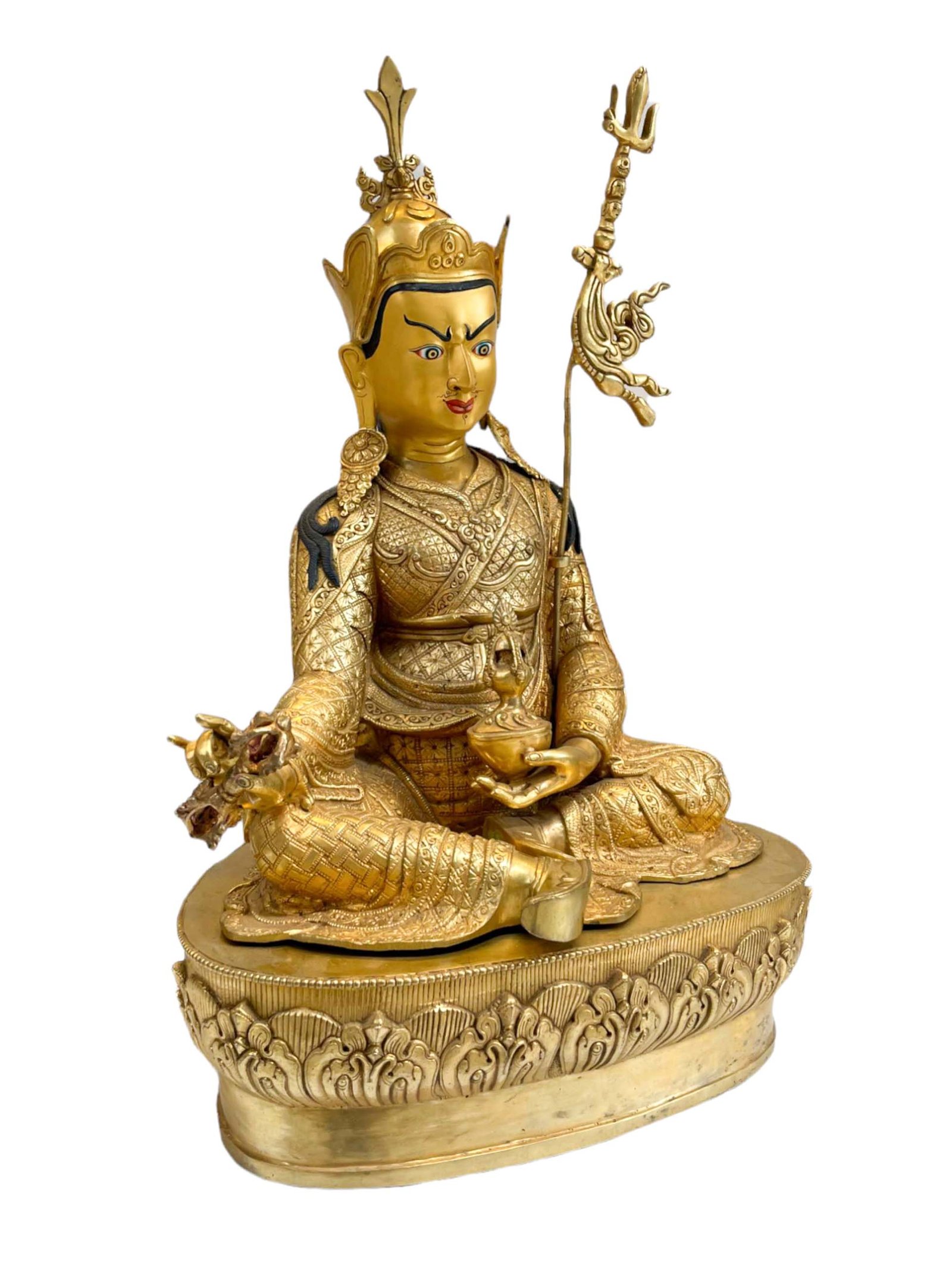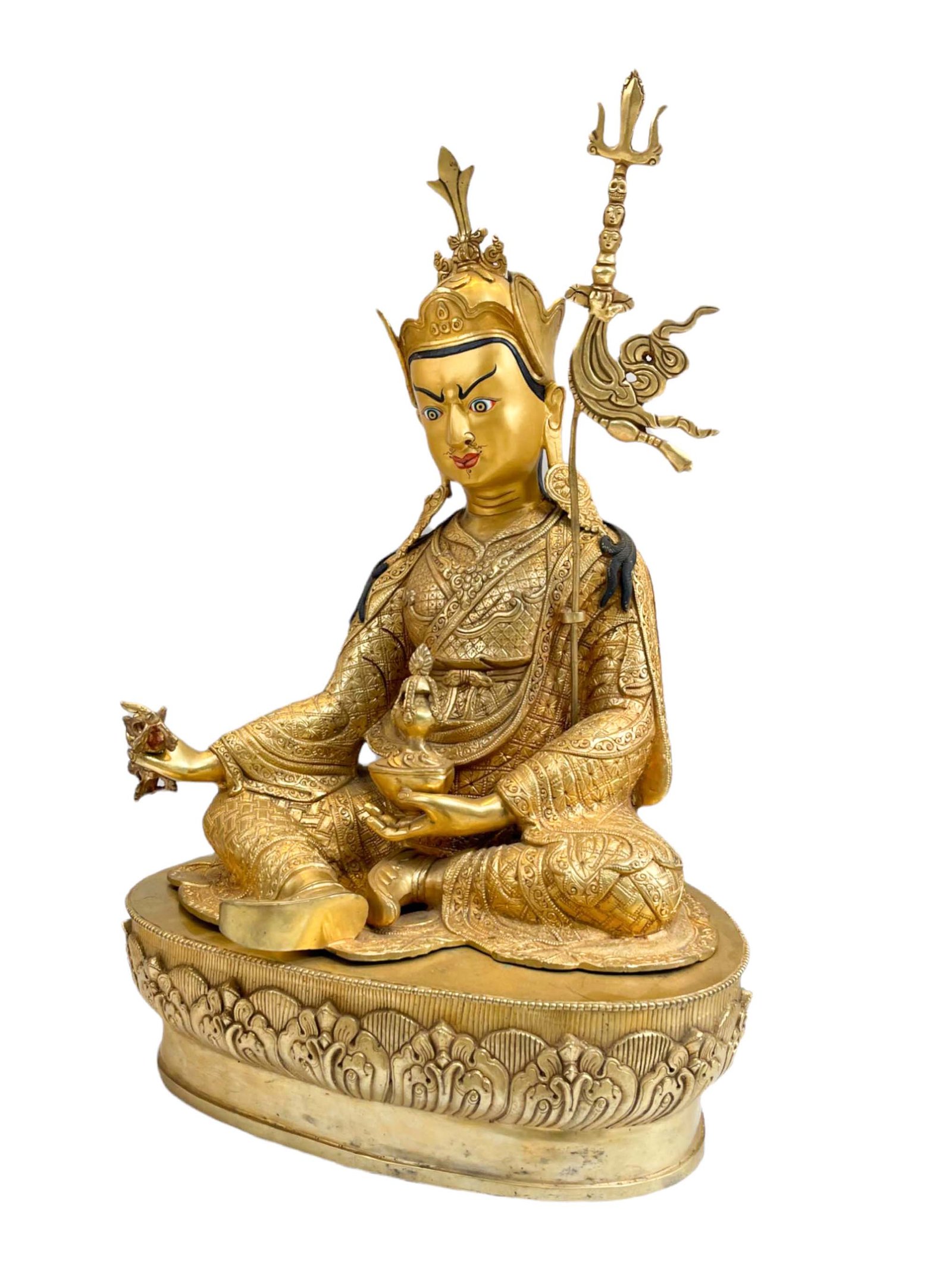 Buddhist Handmade Statue of Padmasambhava, Full Gold Plated, Face Painted , The lotus-born master, wisdom beyond time