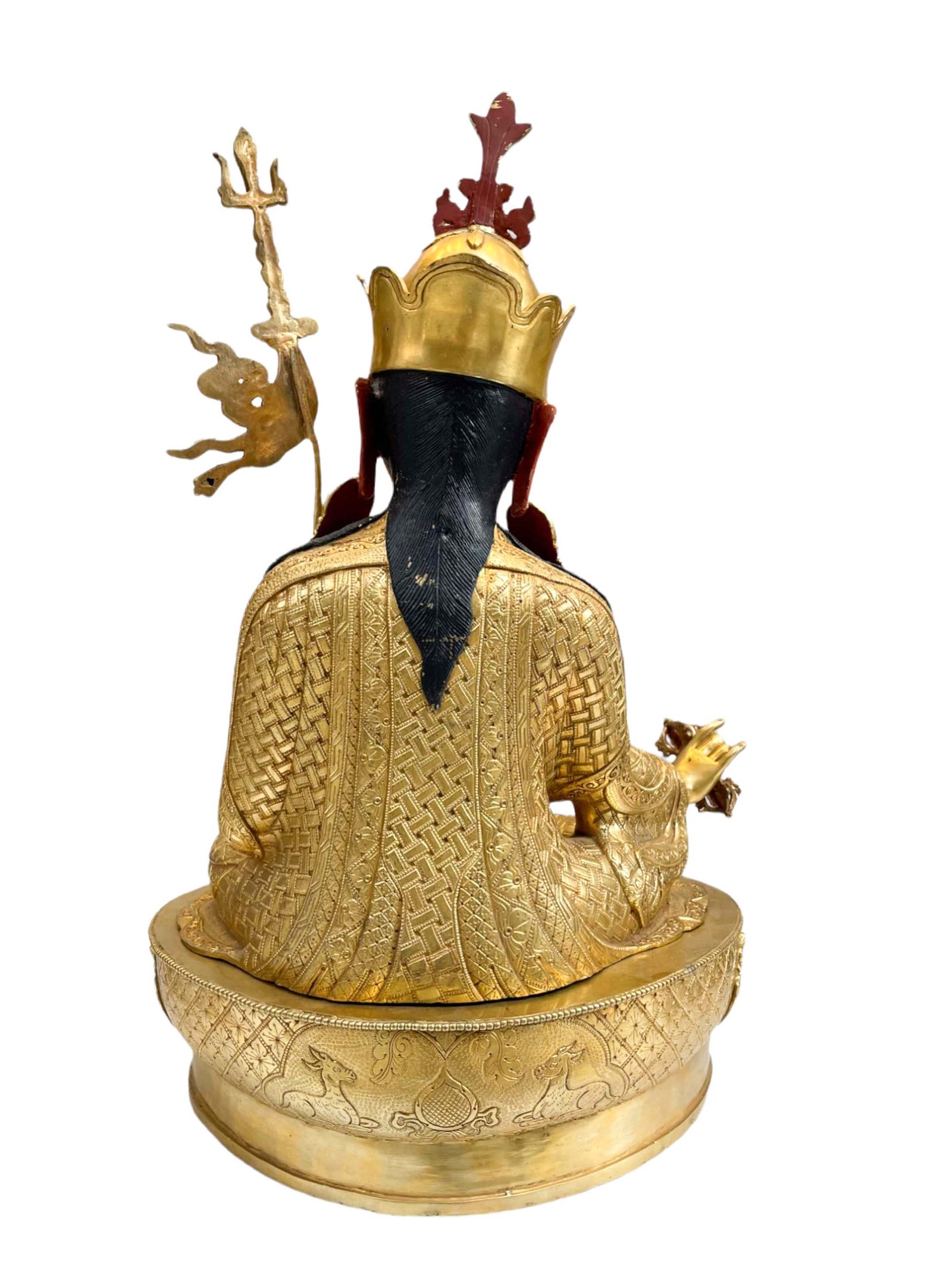 This Padmasambhava is finished with full gold plating. also known as mercury gold plating or fire gold plating. This traditional technique involves the application of a genuine layer of gold onto the Padmasambhava. Referred to as mercury gold plating, it is considered the correct and authentic form of gold plating in Nepal. Despite being more expensive than electroplating, this traditional mercury gold plating is gaining popularity again in Nepal. People are drawn to its authenticity, longevity, and the unmatched beauty it brings to the Padmasambhava. The resurgence of interest in this traditional form of gold plating reflects a growing appreciation for the craftsmanship and cultural heritage of Nepal Read More