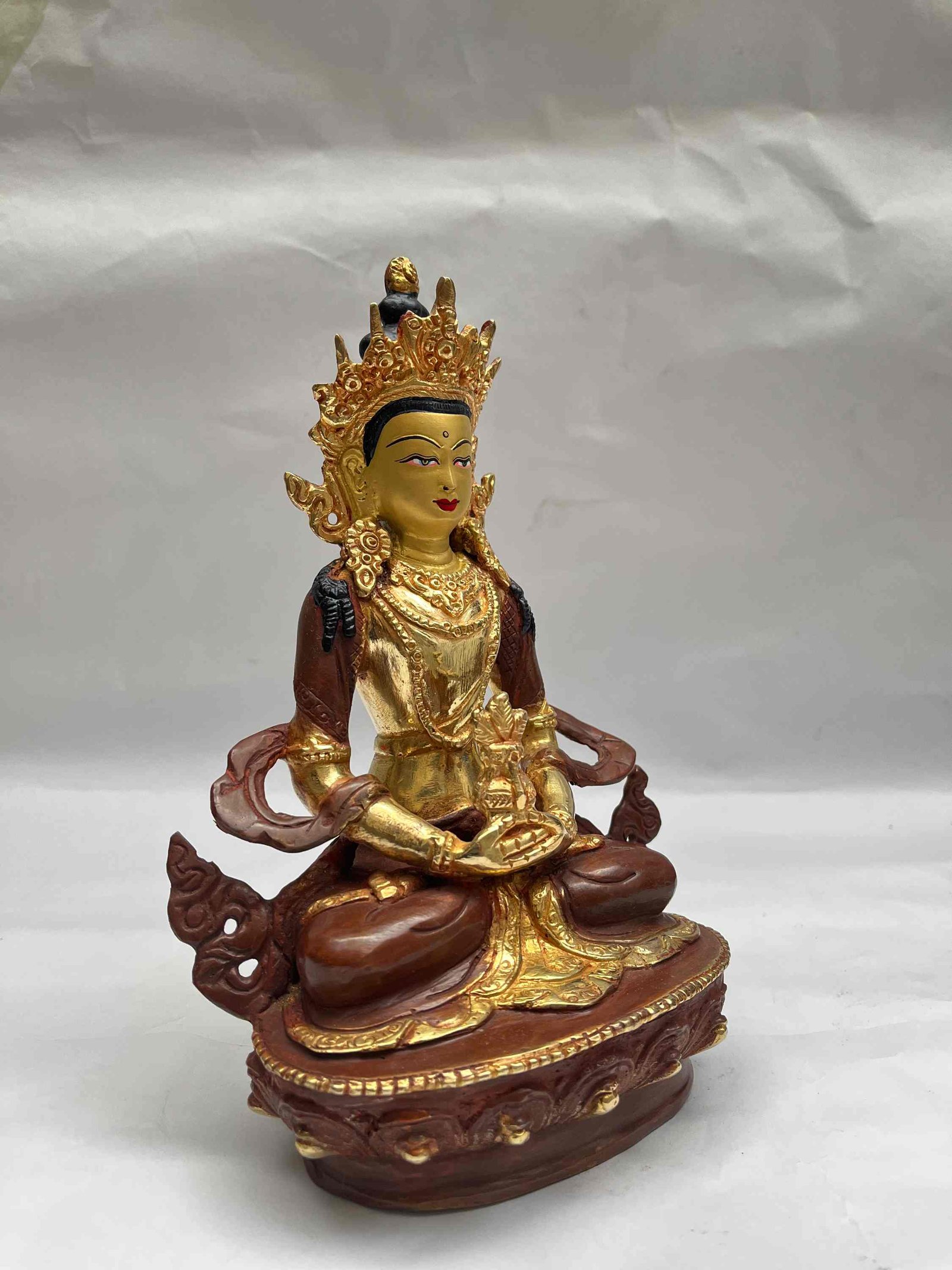 27 cm Aparimita, Buddhist Handmade Statue, Thangka Color Finishing, Stone Setting