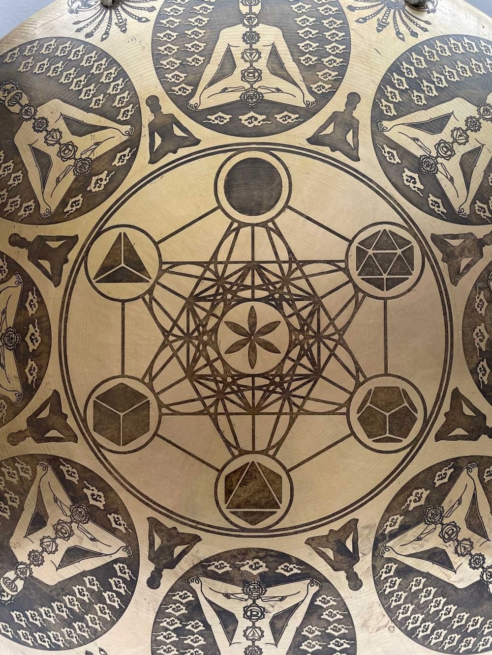 Tibetan Handmade Gongs, Sri Yantral Design, High Quality Design, Wind Gong, Flat Gong |