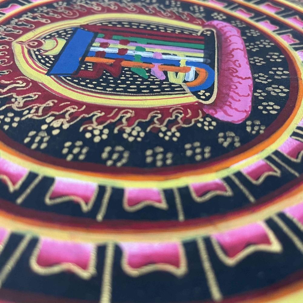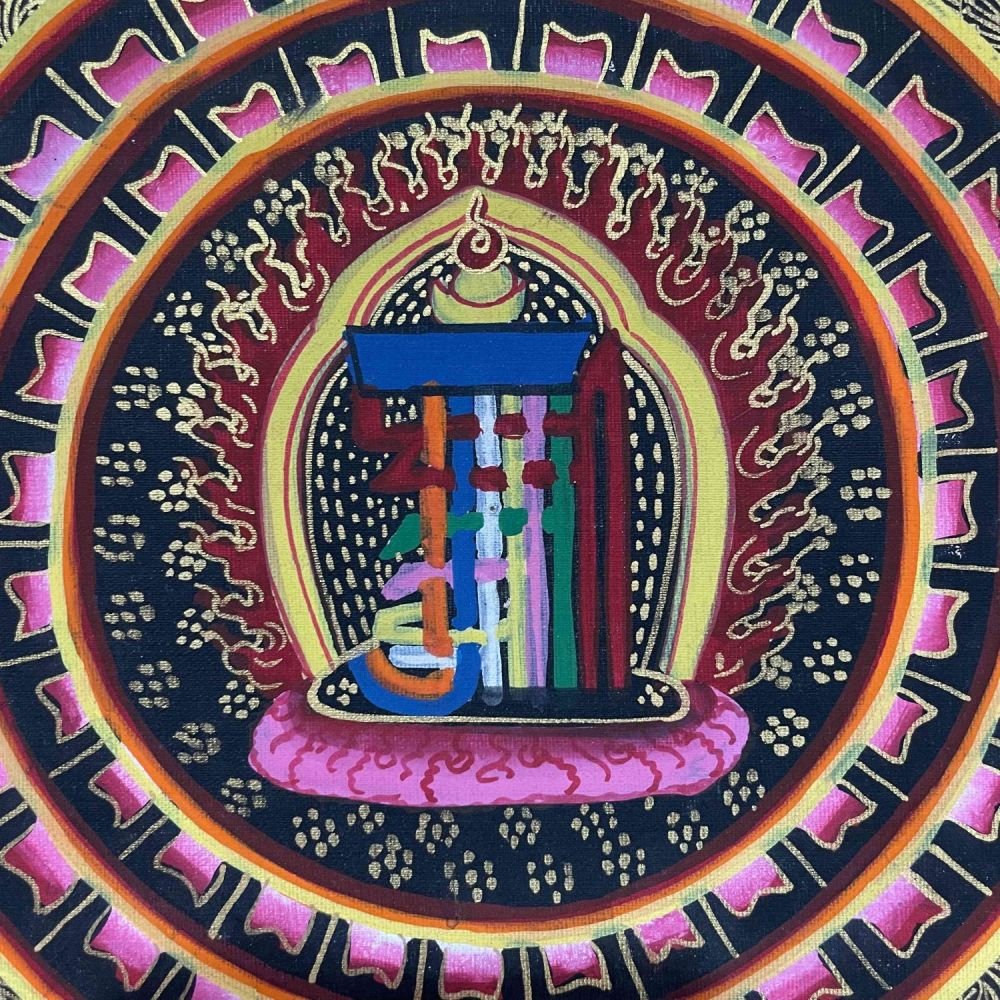 : Brief Introduction On MandalaMandala Thangka painting is a revered form of sacred art in Buddhism, characterized by intricate and vibrant depictions on cotton or silk. These paintings often feature a central deity or Buddha figure surrounded by meticulously crafted symmetrical patterns, geometric designs, and symbolic elements. Mandala Thangkas serve as visual aids for meditation and spiritual growth, guiding practitioners towards inner peace, harmony, and enlightenment. Through their precise brushwork and rich symbolism, these artworks invite viewers to contemplate the profound spiritual journey within themselves, fostering mindfulness, concentration, and a deeper connection with the universal truths of Buddhism. Read More
