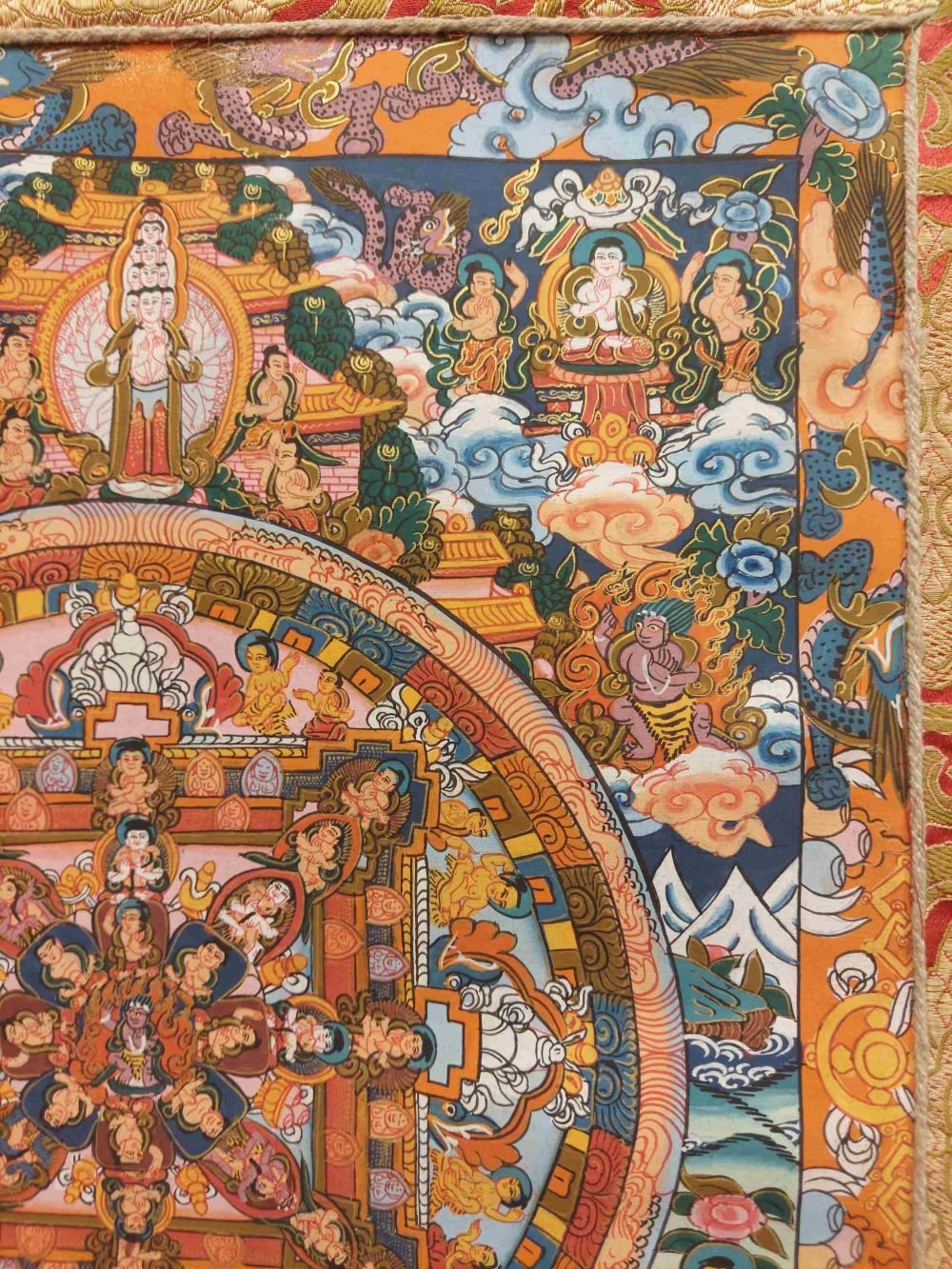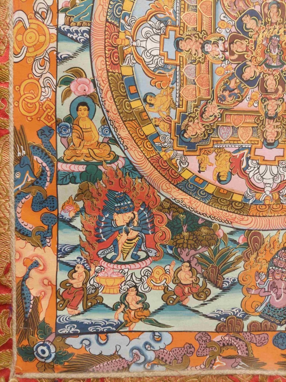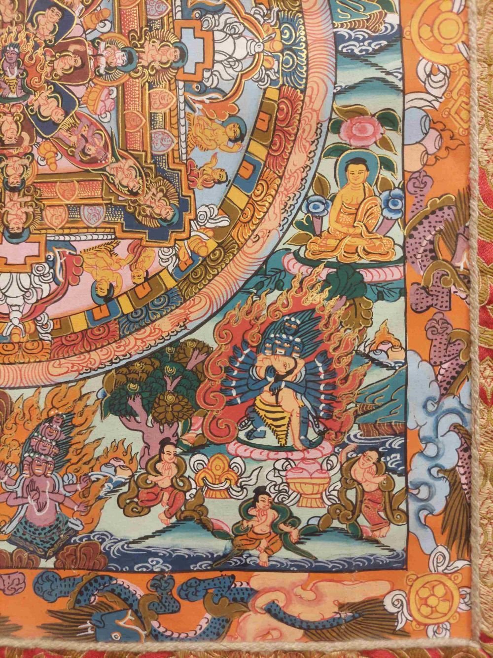 Buddhist Hand Painting Thangka of Mandala, with Brocade, Hand Painted , wrathful destroyer of ignorance