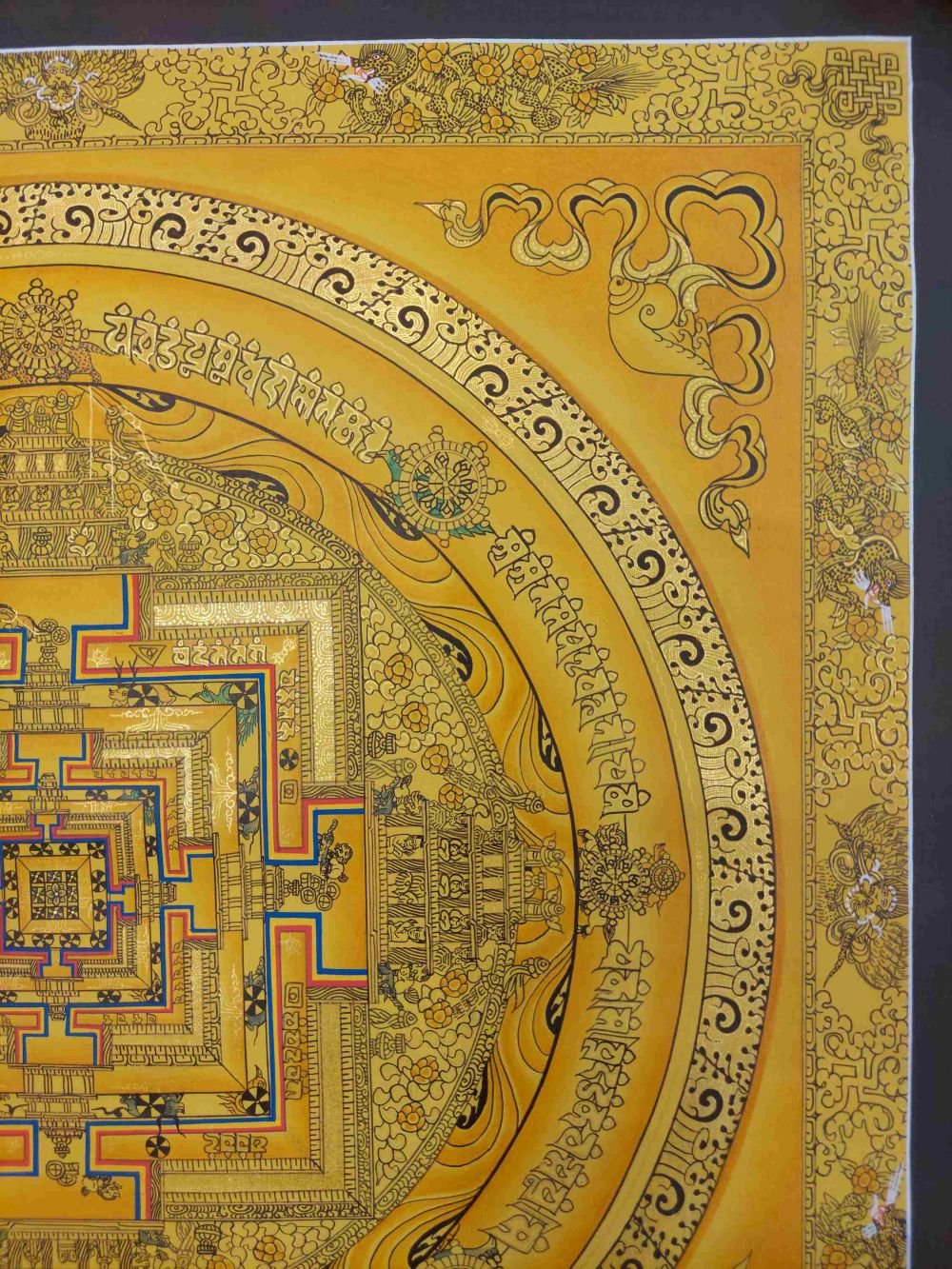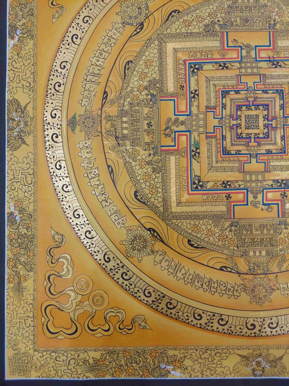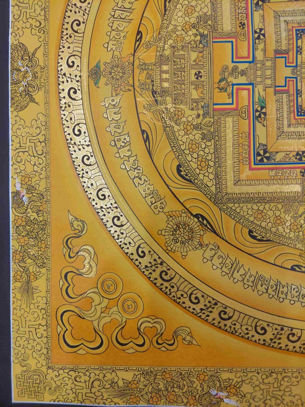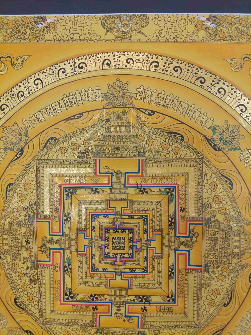 Buddhist Hand Painting Thangka of Kalachakra Mandala Hand Painted, Real Gold, Lamas Art |