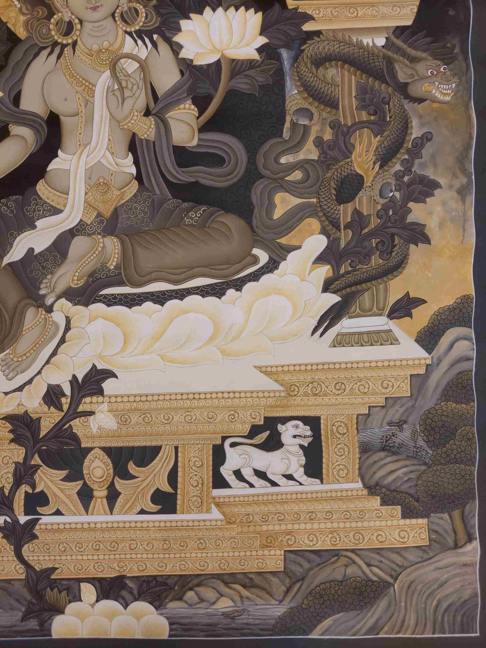 Buddhist Hand Painting Thangka of Newari Style Green Tara Hand Painted, Lamas Art , Goddess of Compassion, Protection, and Swift Action