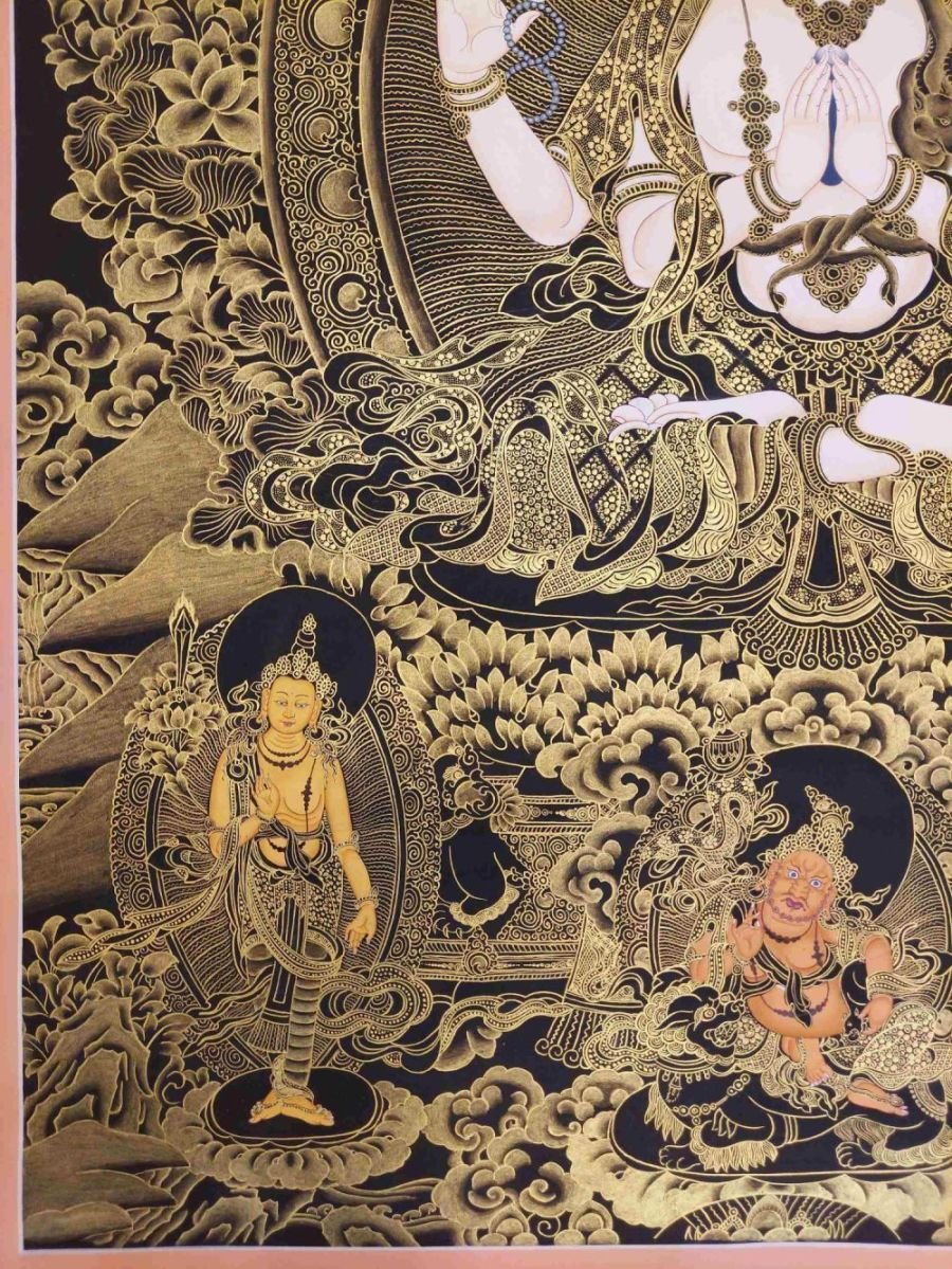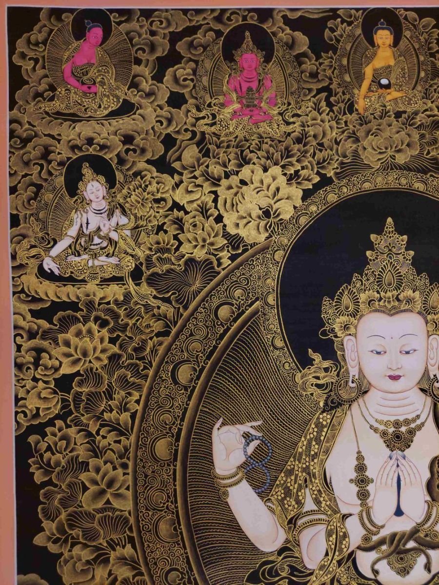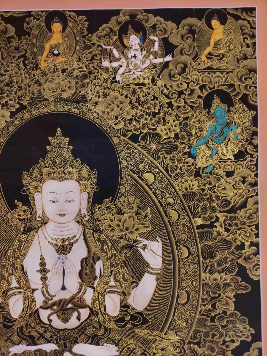 Buddhist Hand Painting Thangka of Chenrezig, Avalokiteshvara, Amitabha Buddha, Shakyamuni Buddha, White Tara, Namgyalma, Green Tara, Yellow Jambhala, Standing Manjushree Hand Painted, Lamas Art , Bodhisattva of Compassion, Protector of All Beings