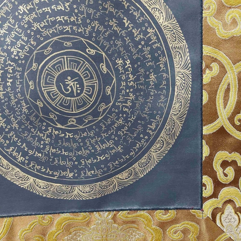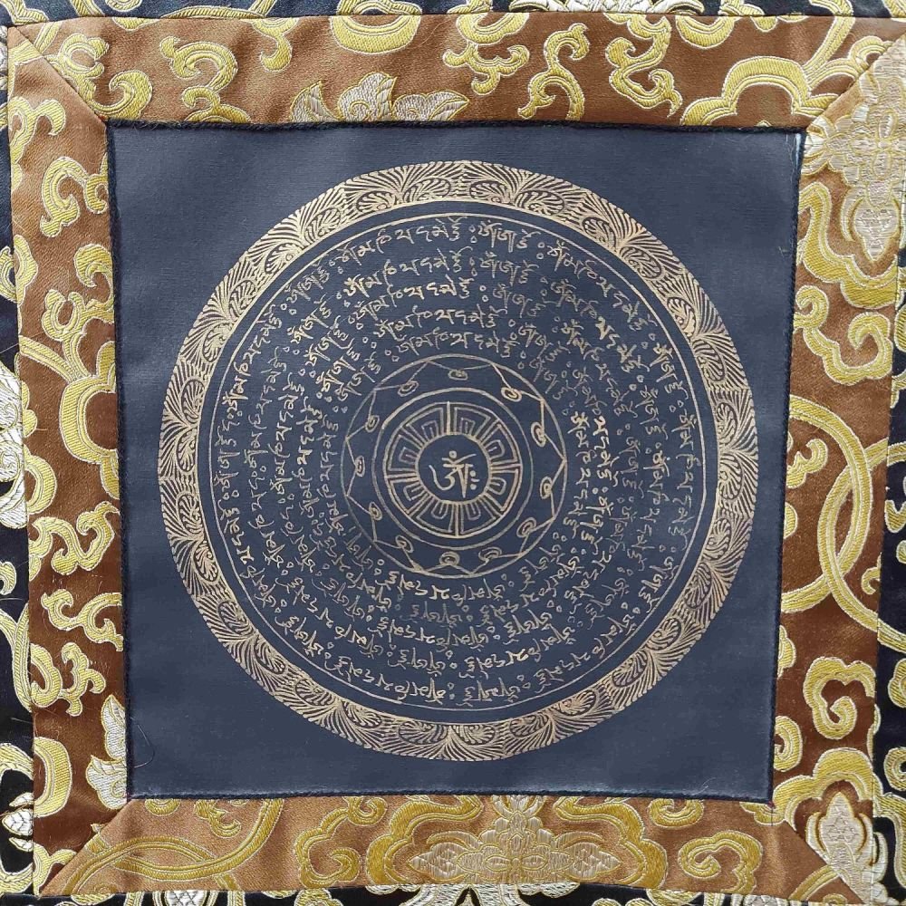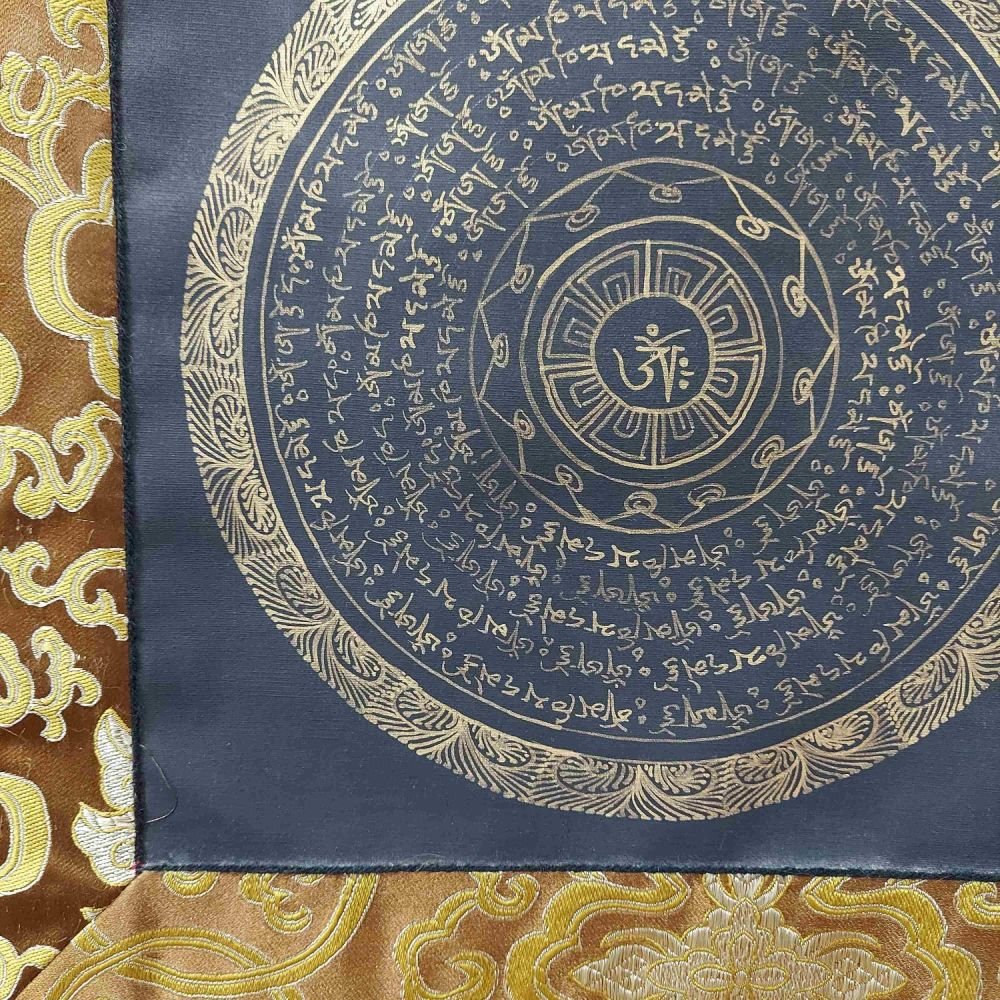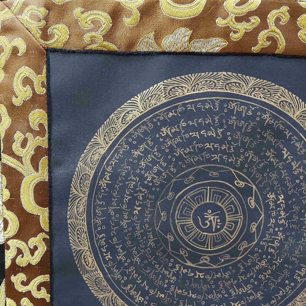 Buddhist Hand Painting Thangka of Mandala with Polyester Brocade, Hand Painted |