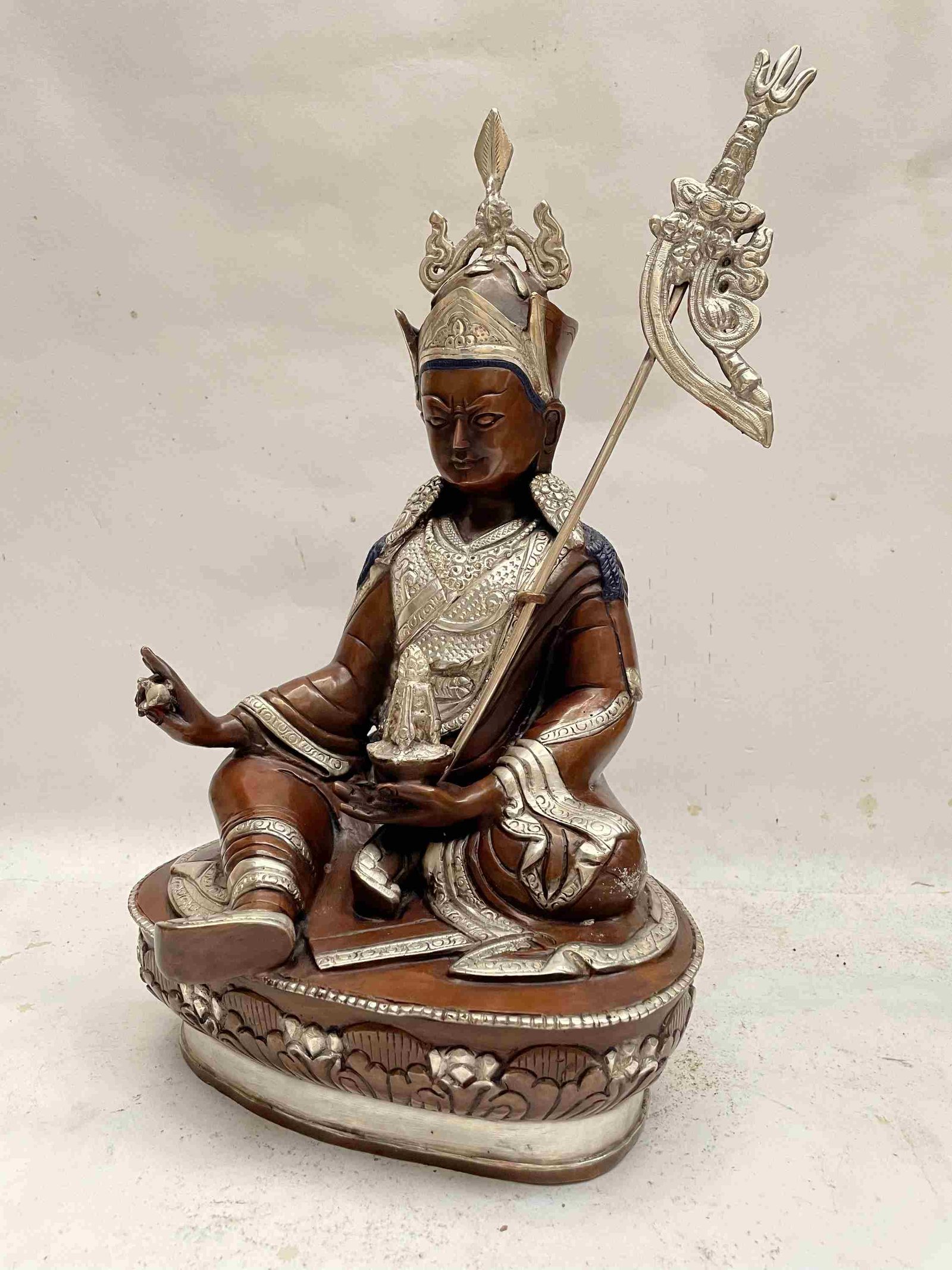 Buddhist Handmade Statue of Padmasambhava, Chocolate and Silver Oxidized , The lotus-born master, wisdom beyond time