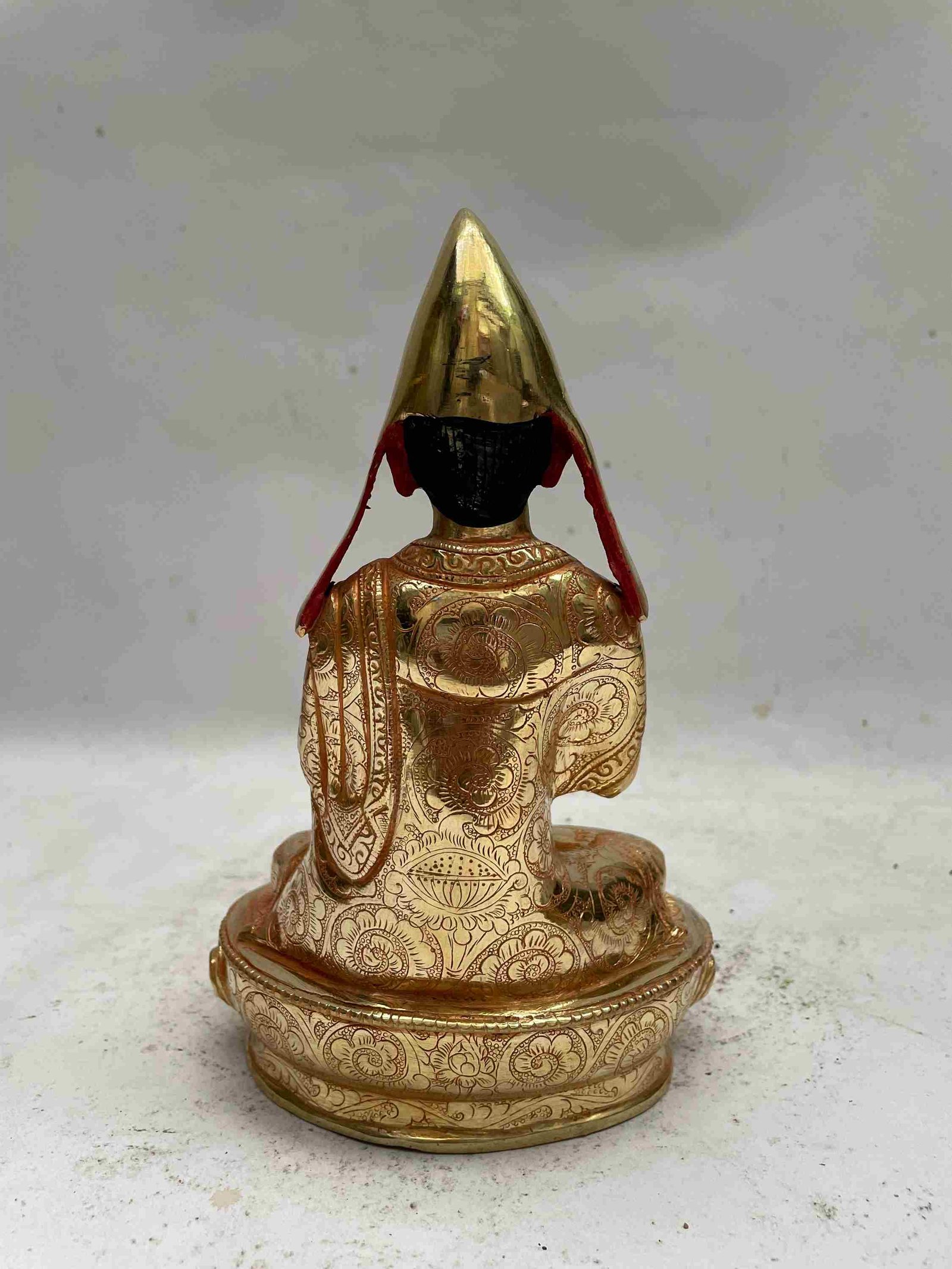 This Tsongkhapa is finished with full gold plating. also known as mercury gold plating or fire gold plating. This traditional technique involves the application of a genuine layer of gold onto the Tsongkhapa. Referred to as mercury gold plating, it is considered the correct and authentic form of gold plating in Nepal. Despite being more expensive than electroplating, this traditional mercury gold plating is gaining popularity again in Nepal. People are drawn to its authenticity, longevity, and the unmatched beauty it brings to the Tsongkhapa. The resurgence of interest in this traditional form of gold plating reflects a growing appreciation for the craftsmanship and cultural heritage of Nepal Read More