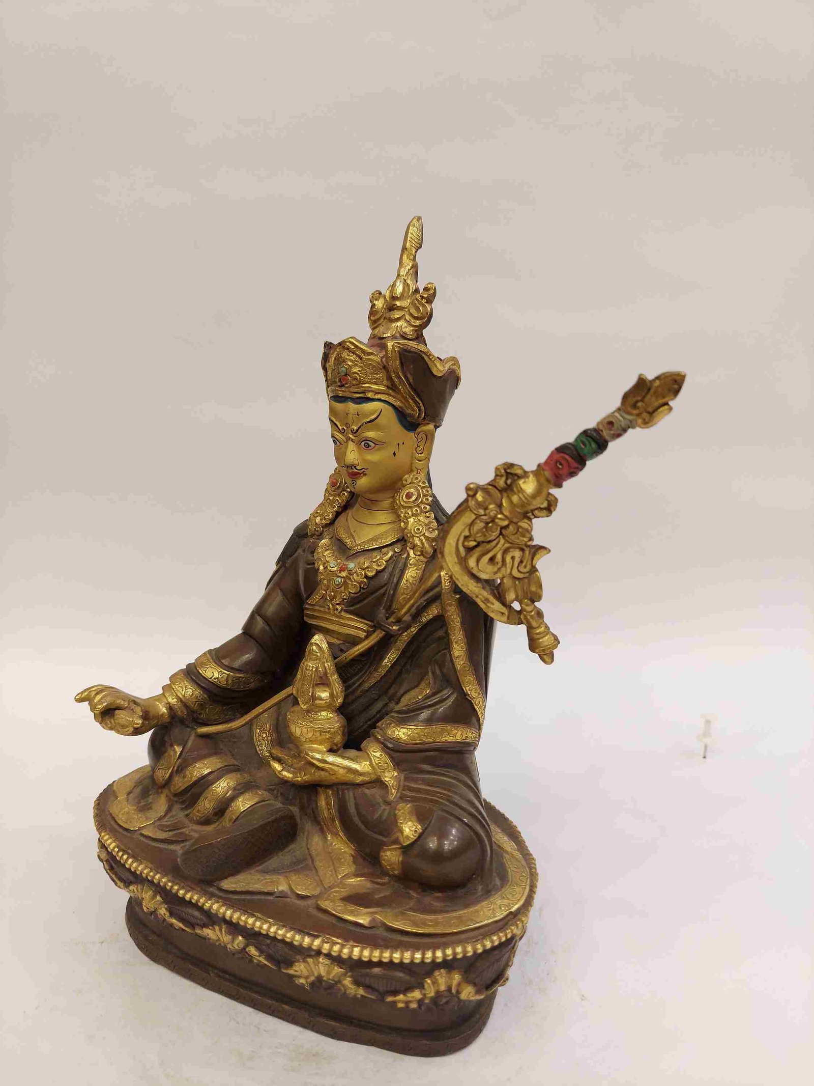 Buddhist Handmade Statue of Padmasambhava, Partly Gold Plated, Face Painted , The lotus-born master, wisdom beyond time