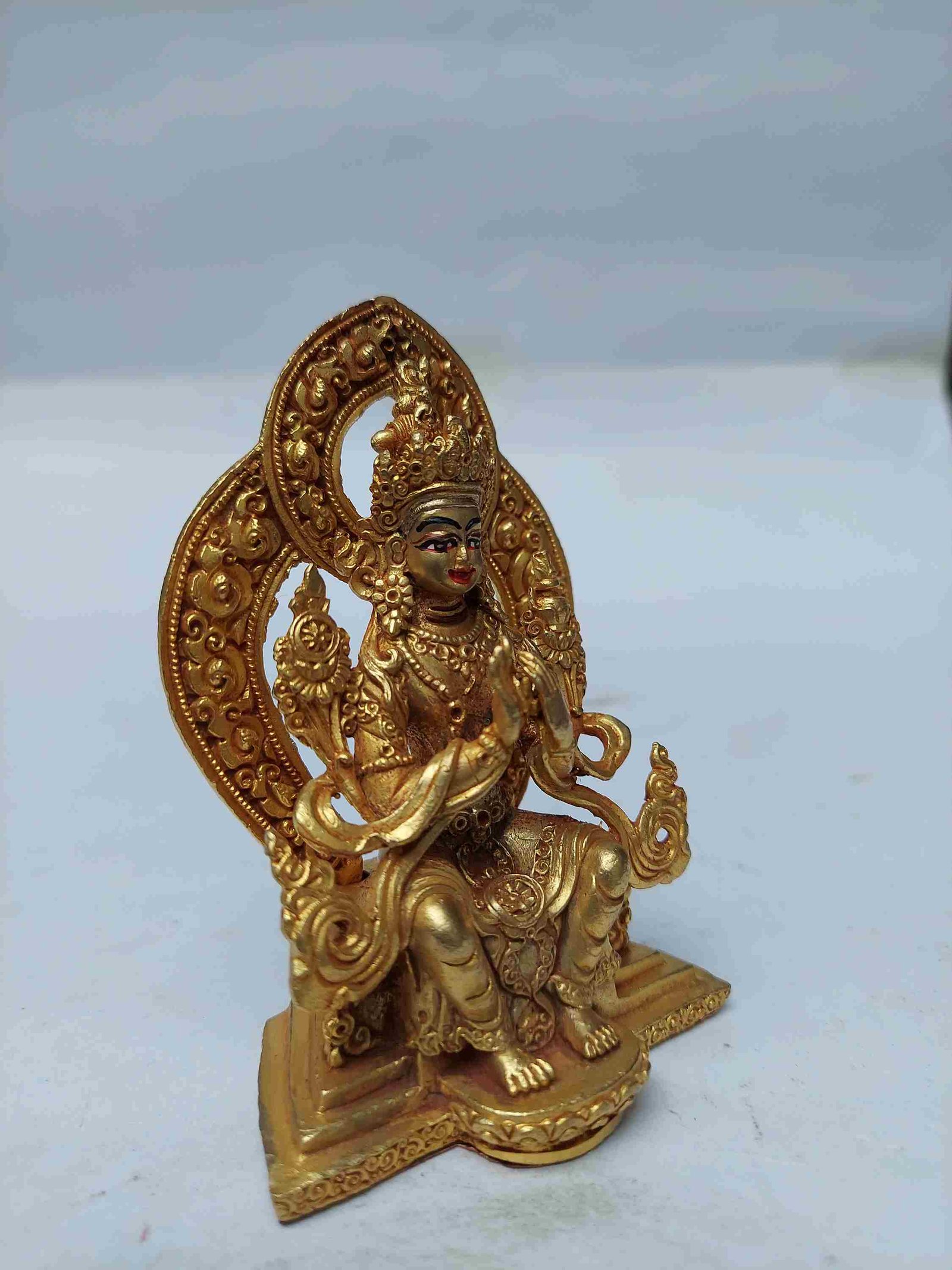 This Maitreya Buddha is finished with full gold plating. also known as mercury gold plating or fire gold plating. This traditional technique involves the application of a genuine layer of gold onto the Maitreya Buddha. Referred to as mercury gold plating, it is considered the correct and authentic form of gold plating in Nepal. Despite being more expensive than electroplating, this traditional mercury gold plating is gaining popularity again in Nepal. People are drawn to its authenticity, longevity, and the unmatched beauty it brings to the Maitreya Buddha. The resurgence of interest in this traditional form of gold plating reflects a growing appreciation for the craftsmanship and cultural heritage of Nepal Read More