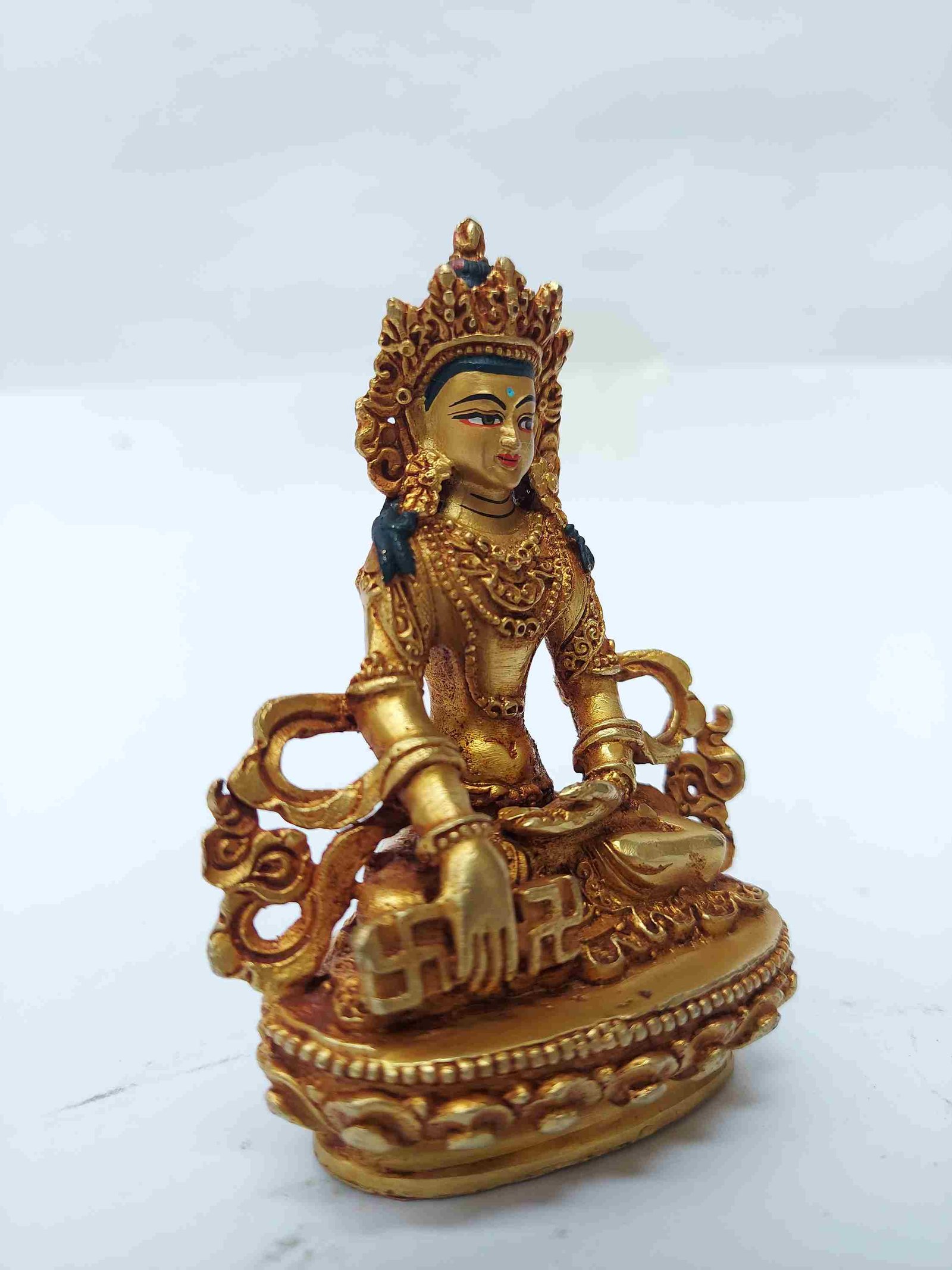 This Shakyamuni Buddha is finished with full gold plating. also known as mercury gold plating or fire gold plating. This traditional technique involves the application of a genuine layer of gold onto the Shakyamuni Buddha. Referred to as mercury gold plating, it is considered the correct and authentic form of gold plating in Nepal. Despite being more expensive than electroplating, this traditional mercury gold plating is gaining popularity again in Nepal. People are drawn to its authenticity, longevity, and the unmatched beauty it brings to the Shakyamuni Buddha. The resurgence of interest in this traditional form of gold plating reflects a growing appreciation for the craftsmanship and cultural heritage of Nepal Read More
