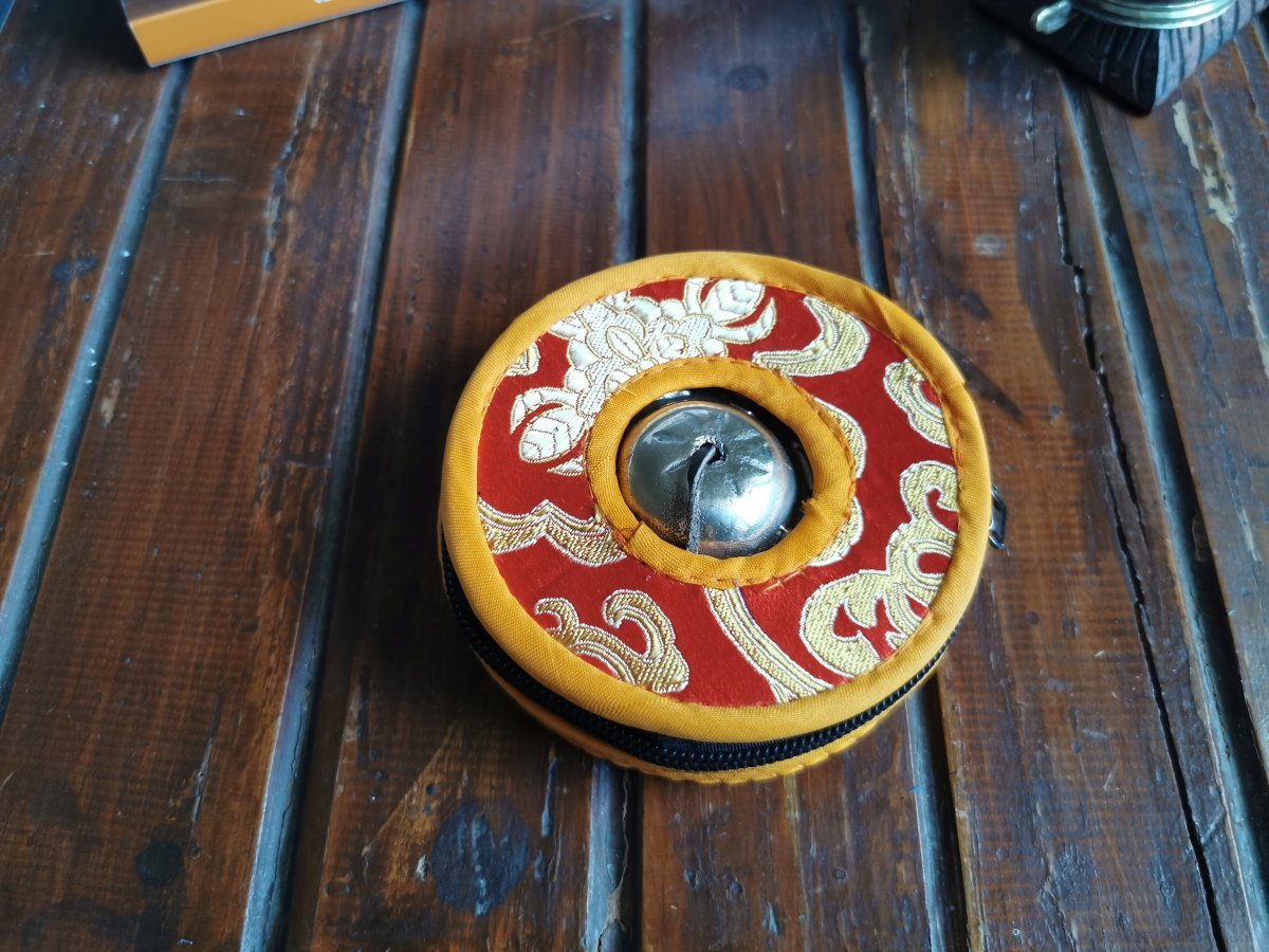 Buddhist Bronze Tingsha Om Mane Padme Om with Cover , A pair of cymbals used in Tibetan Buddhism for rituals, meditation, and sound healing