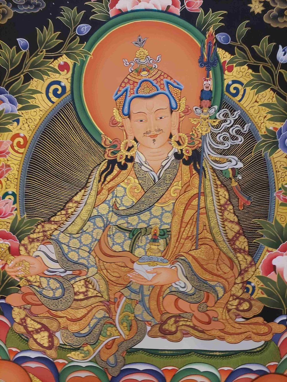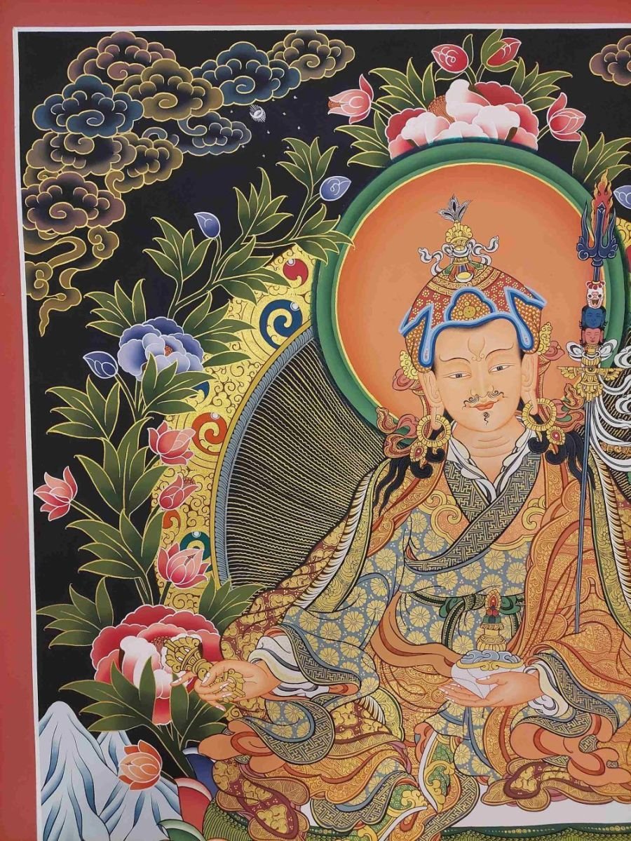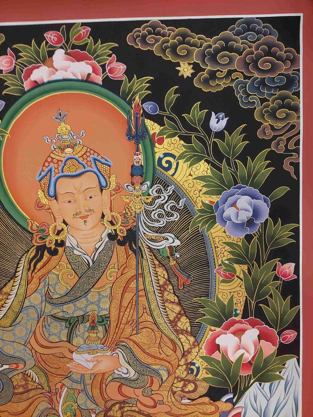 Buddhist Handmade Thangka of Padmasambhava, Guru Rimpochhen, Real Gold, Hand Painted , The lotus-born master, wisdom beyond time