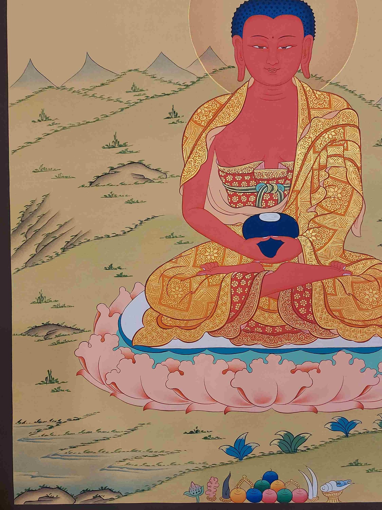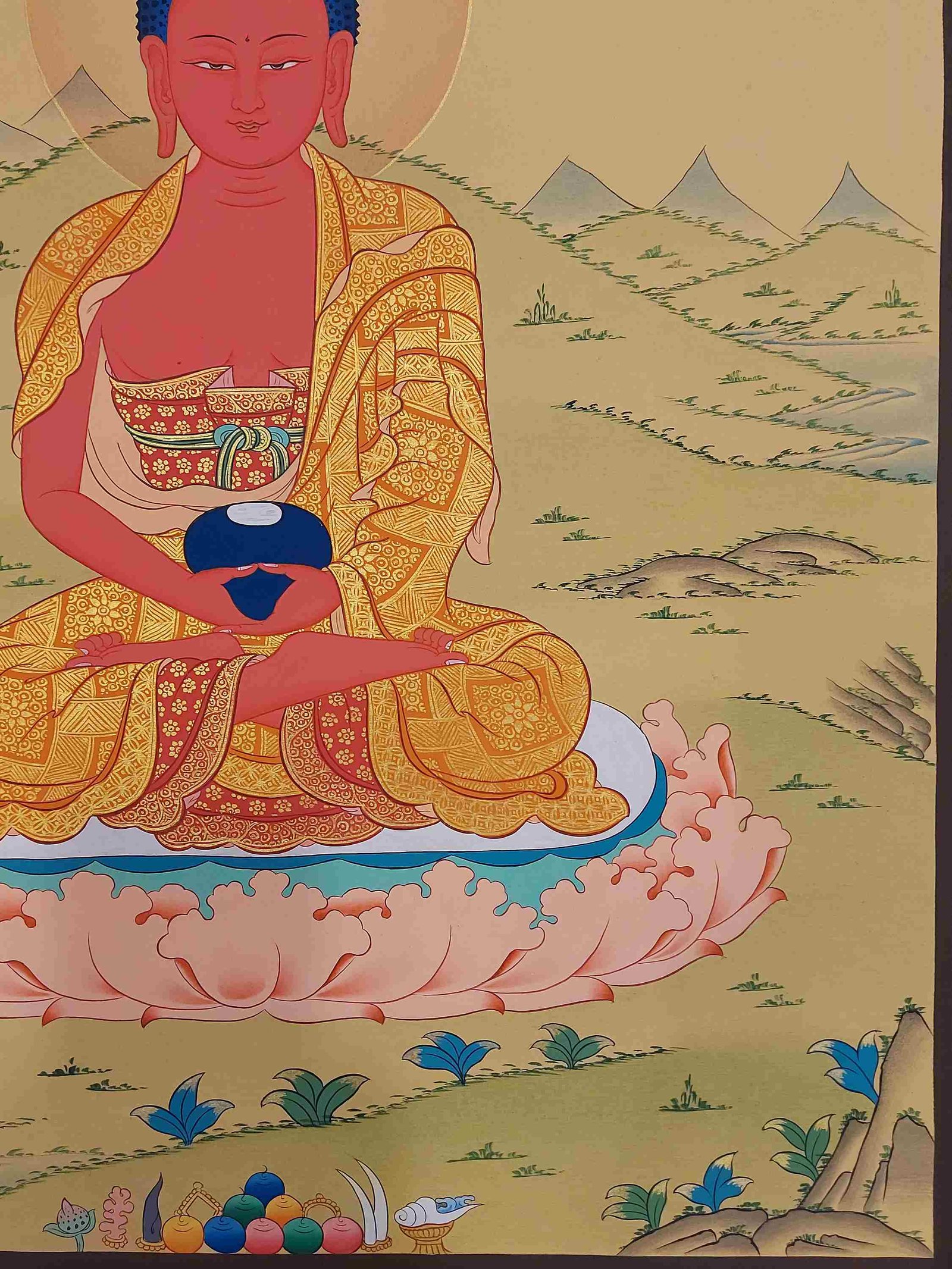Karma Gadri Art Style, Buddhist Handmade Thangka of Amitabha Buddha, Hand Painted, Real Gold , Buddha of Infinite Light: Symbol of Boundless Compassion