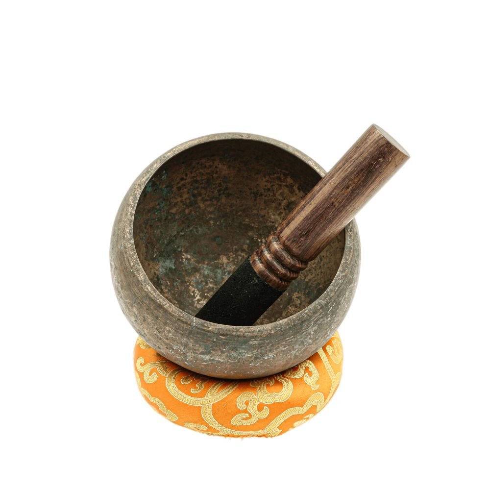 Old, Buddhist Real Antique Hand Beaten Mani Singing Bowl, Select Accessories |