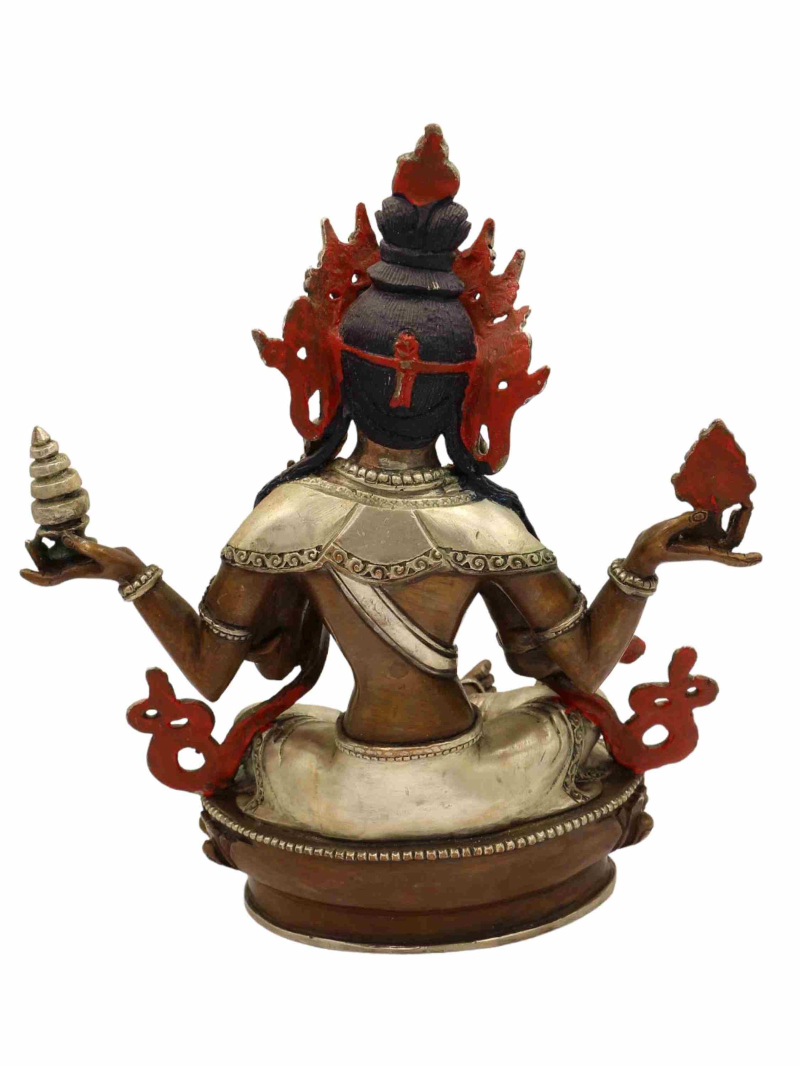 Buddhist Handmade Statue of Lakshmi, Chocolate Oxidation with Silver Plating, with Painted Face , Goddess of Wealth, Prosperity, and Fortune