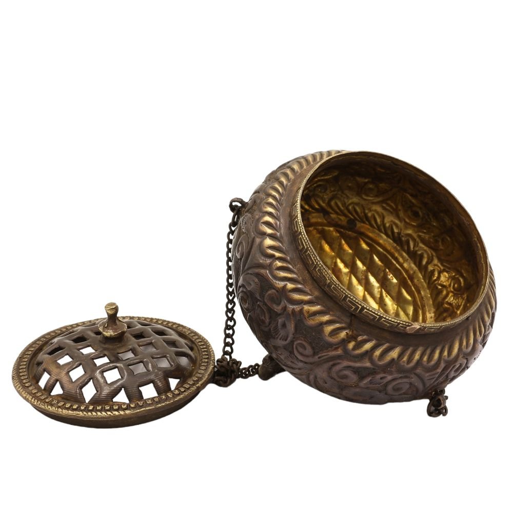 Sang Phulpa Hand Beaten Metal Incense Burner, Brass and Copper, Hanging & Swinging, Sangbur |