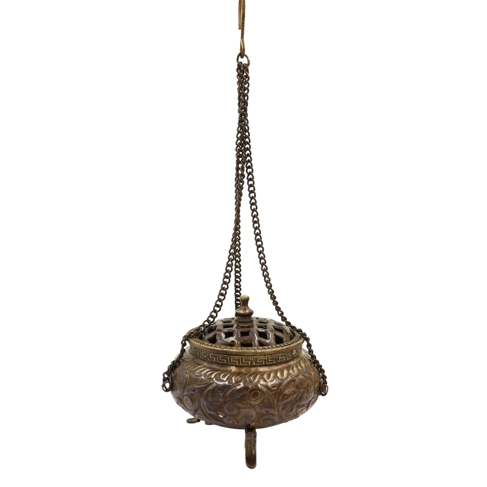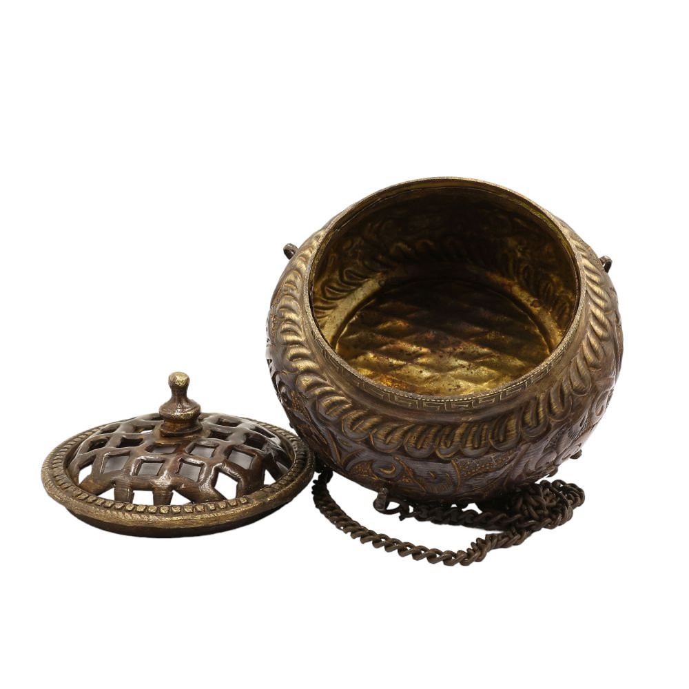 Sang Phulpa Hand Beaten Metal Incense Burner, Brass and Copper, Hanging & Swinging, Sangbur |