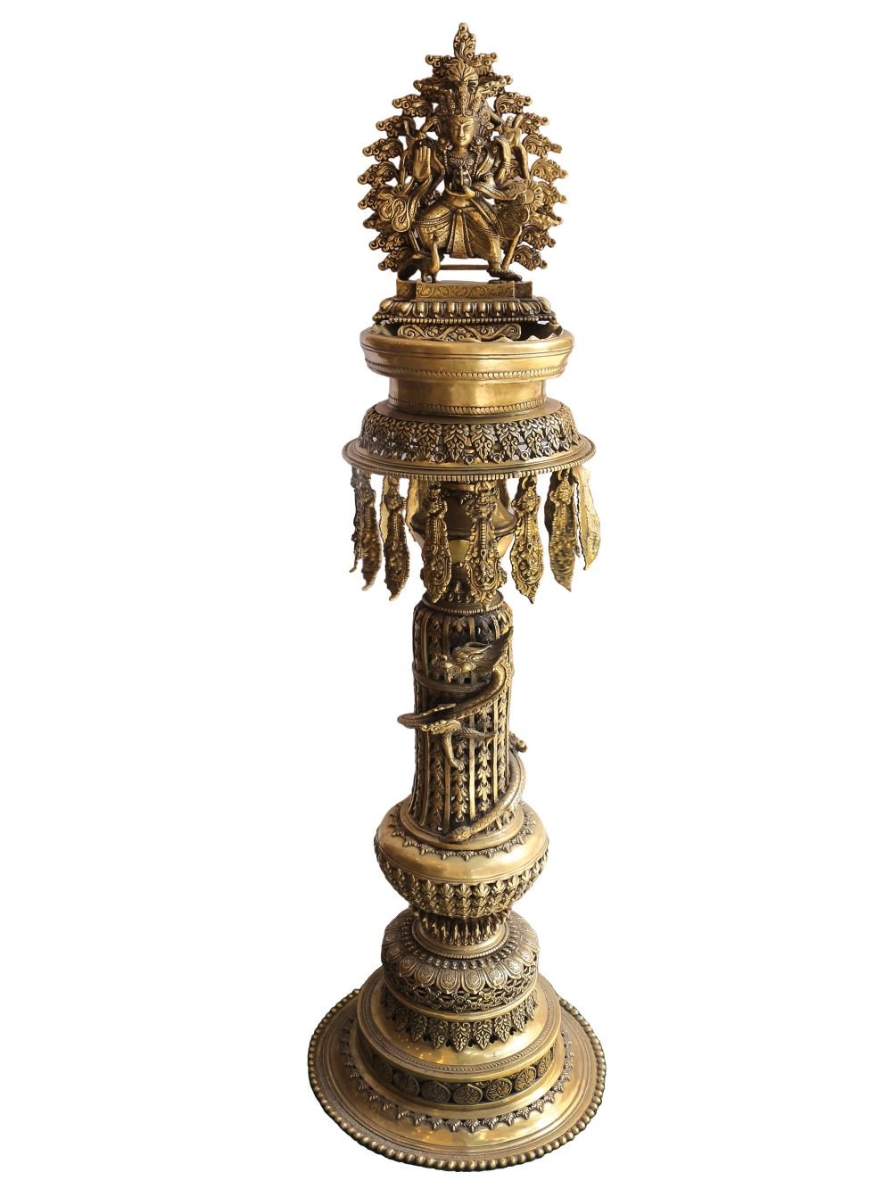 Panas is a traditional brass oil lamp that has been handcrafted and hand-carved by some of the finest artisans in Nepal. This lamp has been used in the Newar community for centuries for various purposes such as lighting homes, temples, and for positive and successful endeavors during new business openings, events, or functions. Additionally, it is also used in ritual ceremonies in Nepal.