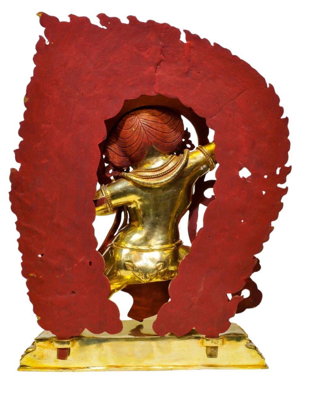 This Vajrapani has finished in a full gold Plated antique patina. The Antique finishing imparts a sense of age and character to the Vajrapani, enhancing its overall appeal. In the Antique finishing process, after the Gold plating is applied, a carefully applied layer of varnish is added. This varnish not only contributes to the antique look but also serves as a protective barrier, ensuring the longevity of the gold plating. It helps to safeguard the gold layer but also prevents tarnishing for an extended period. Read More