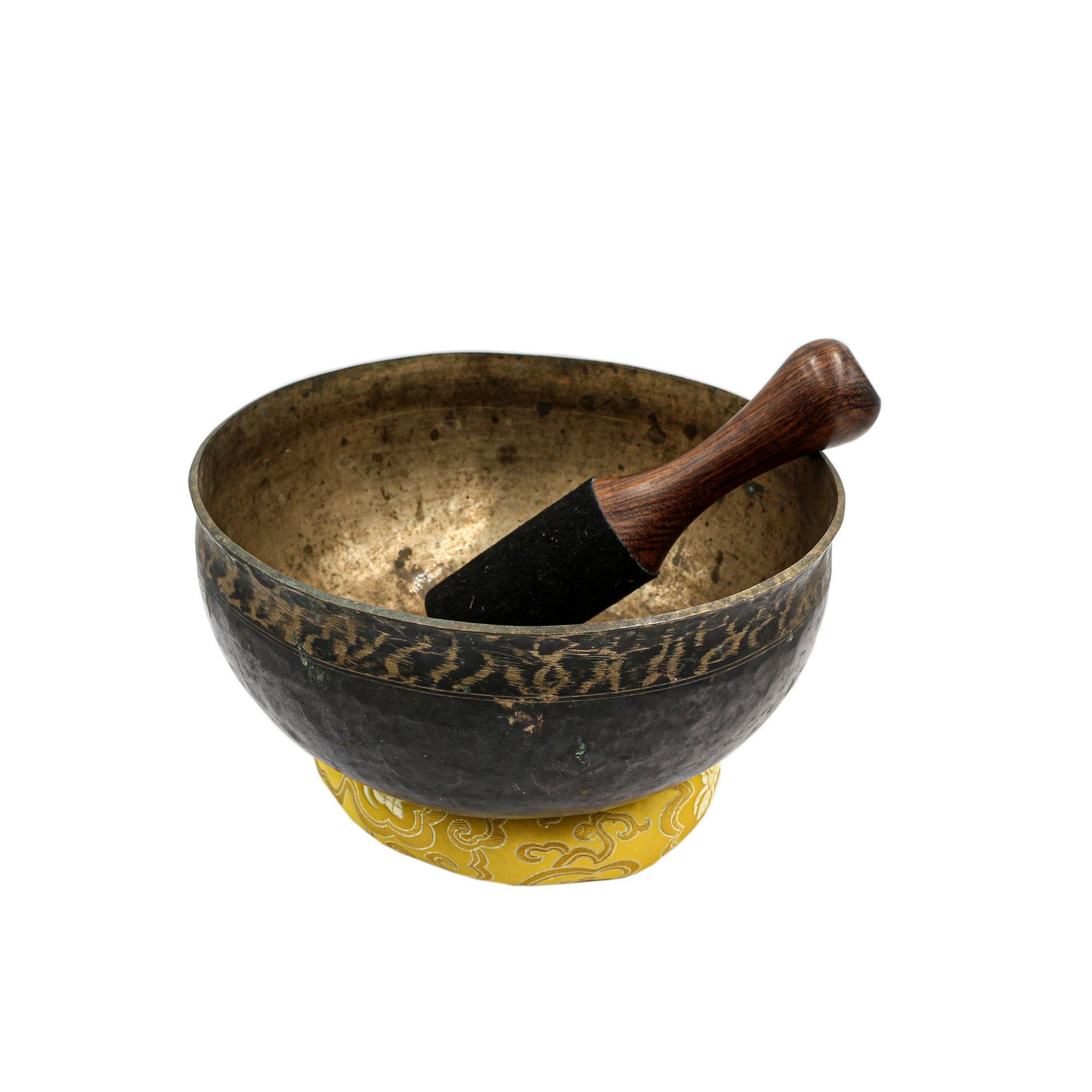 Old, Buddhist Hand Beaten Ultabati Singing Bowl, with Plain Design, Select Accessories |