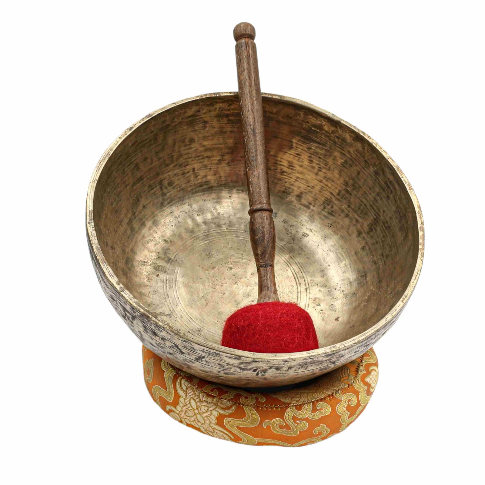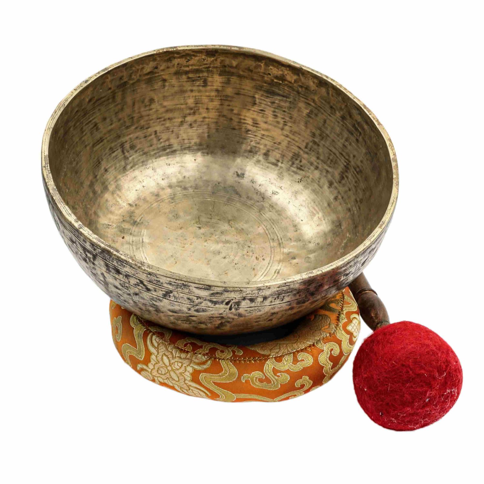 Old, Buddhist Real Antique Hand Beaten Jambati Singing Bowl, Select Accessories |