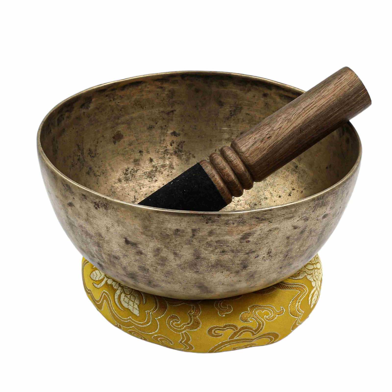 Old, Buddhist Real Antique Hand Beaten Jambati Singing Bowl, Select Accessories |