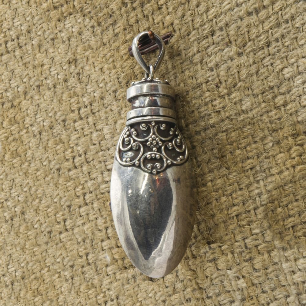A Nepali silver pendant is a beautiful piece of jewelry that is often adorned with semi-precious stones and intricate designs. These pendants are often made by skilled artisans in Nepal who use traditional techniques and designs that have been passed down through generations.