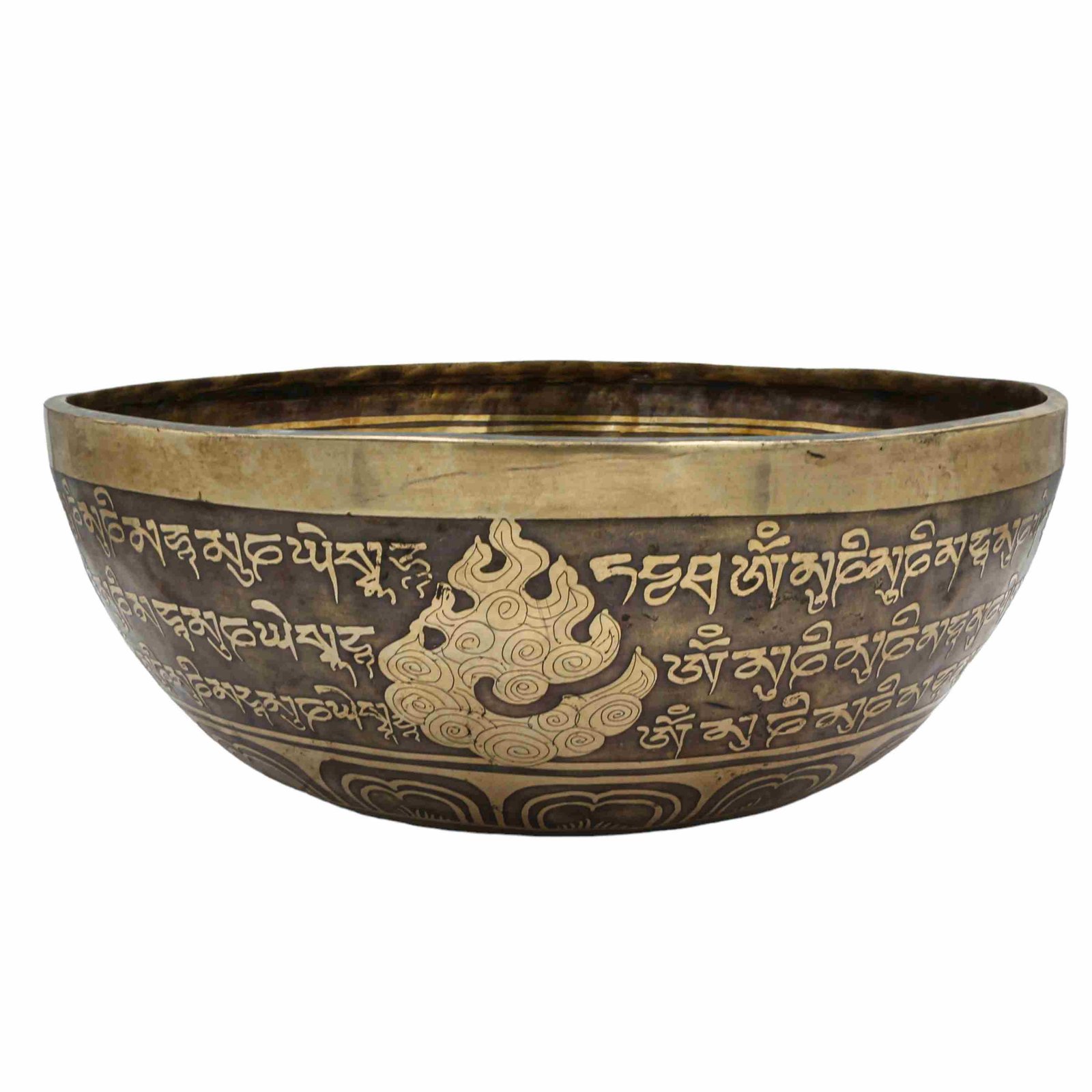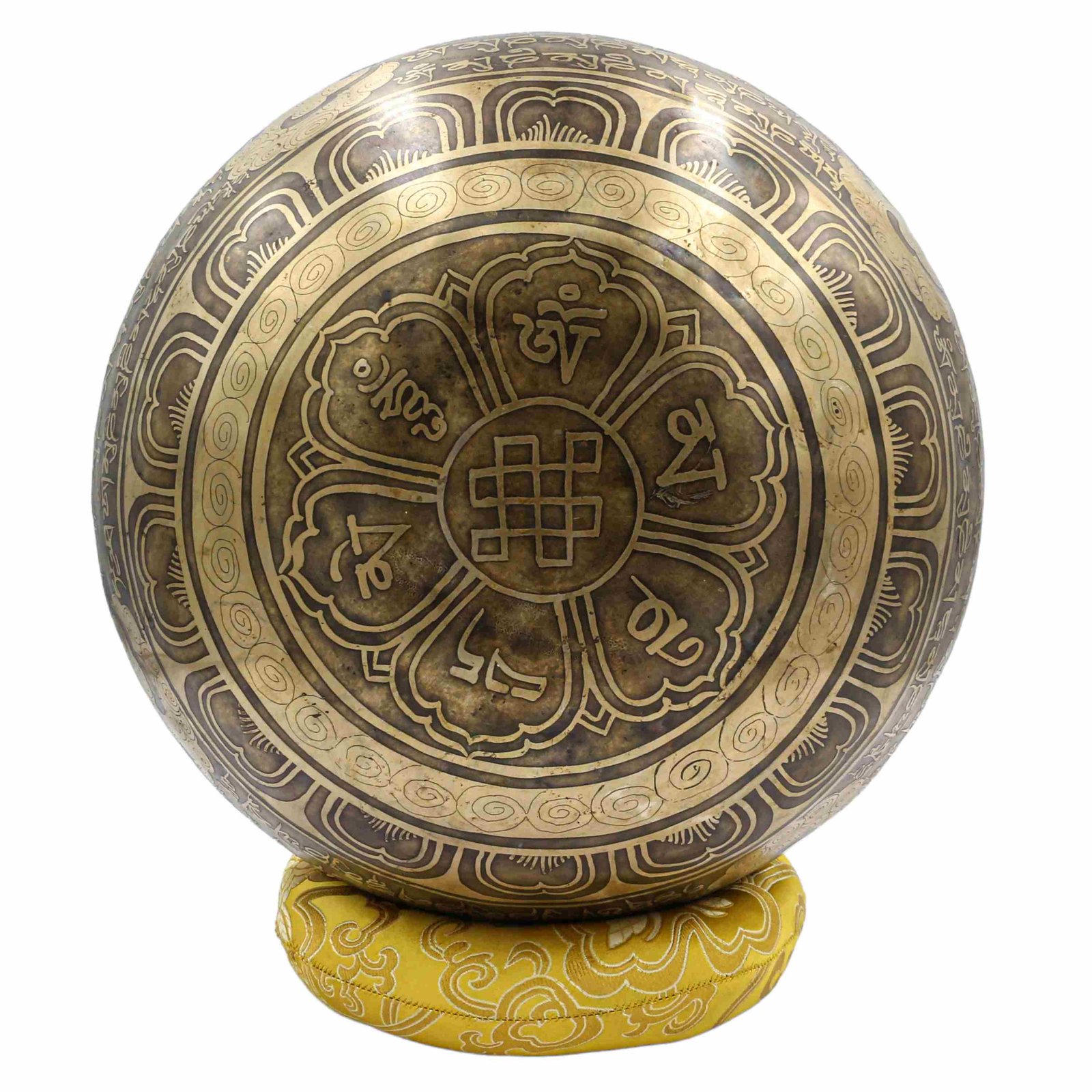 Buddhist Hand Beaten Jambati Singing Bowl, with Super Fine Etching Carving of Shakyamuni Buddha, Select Accessories |