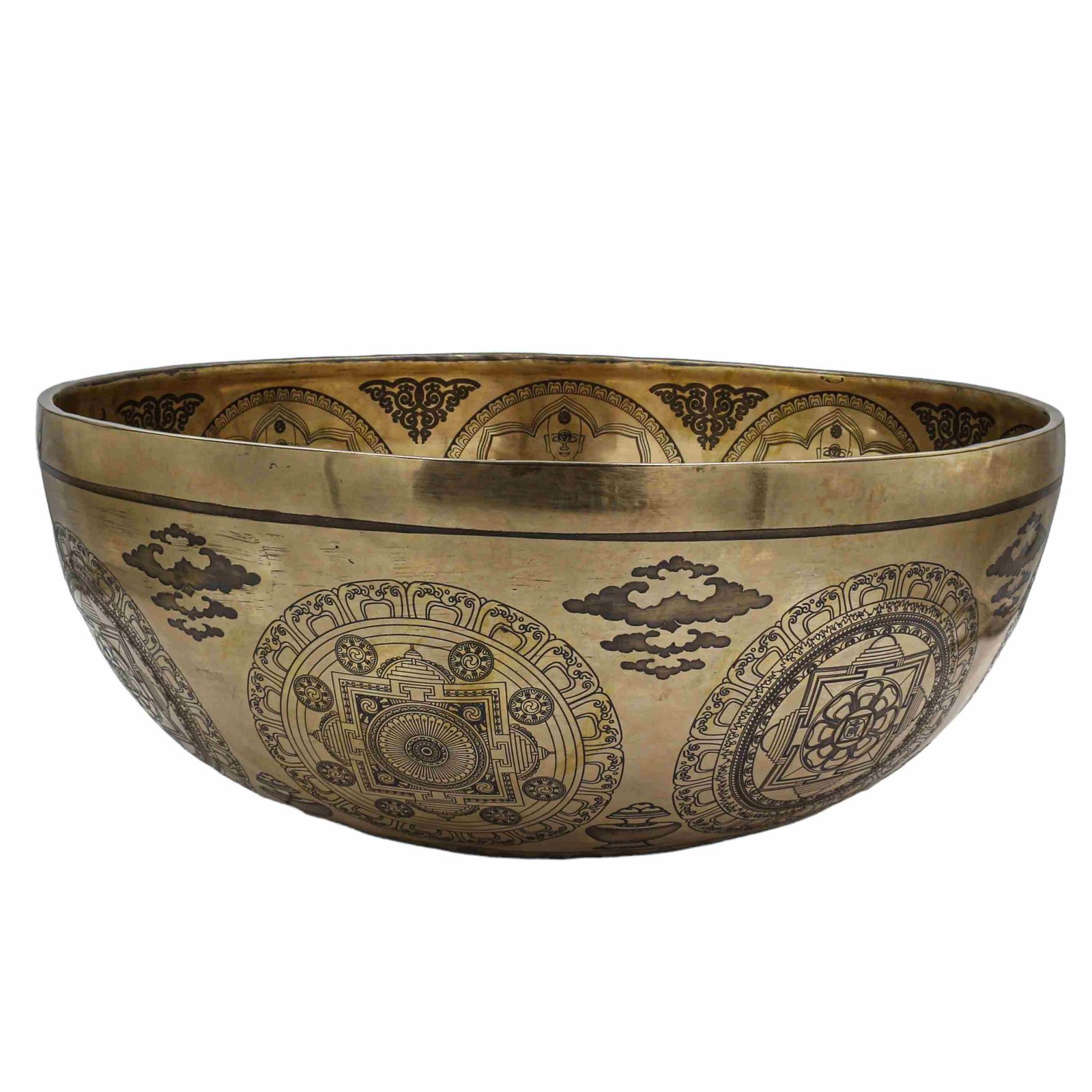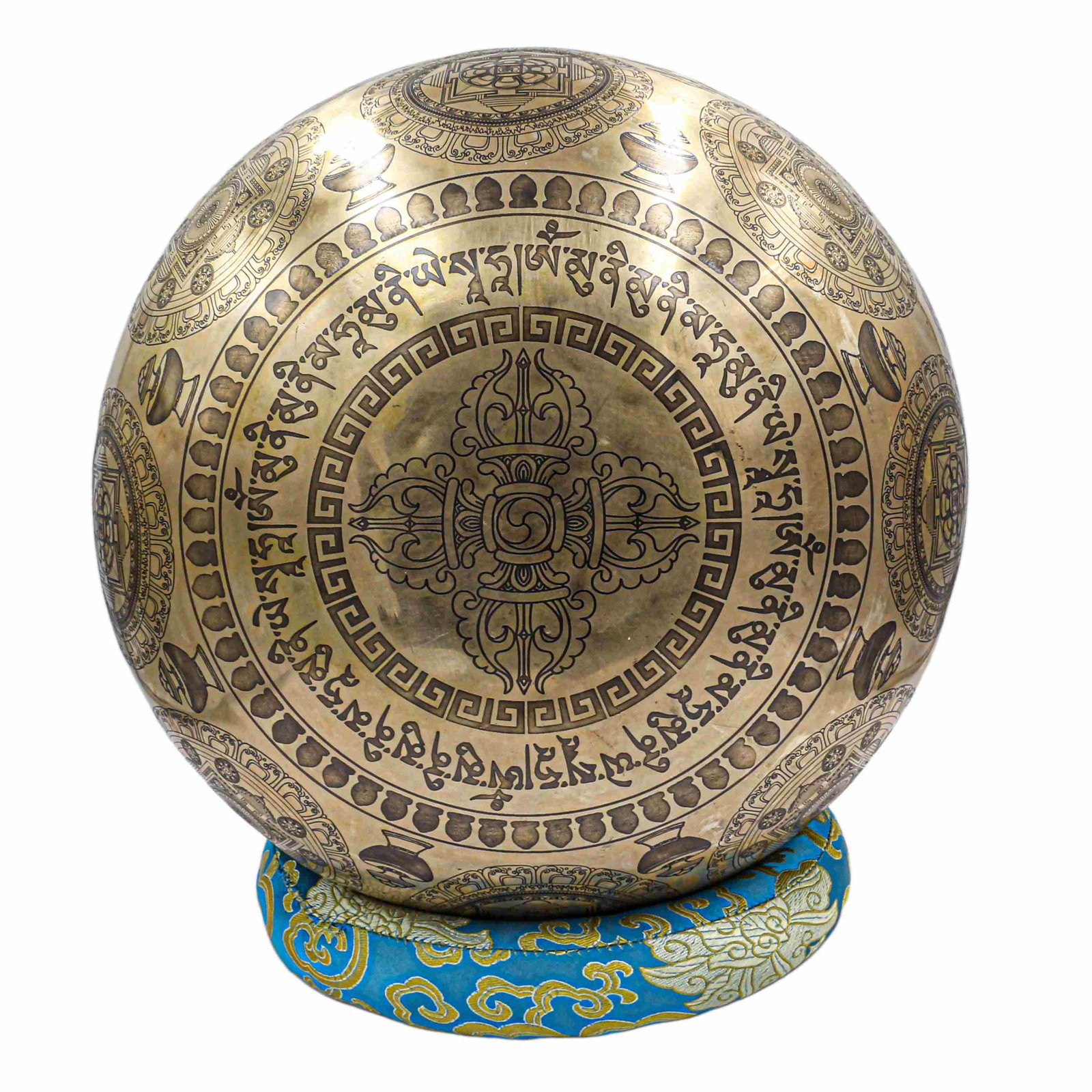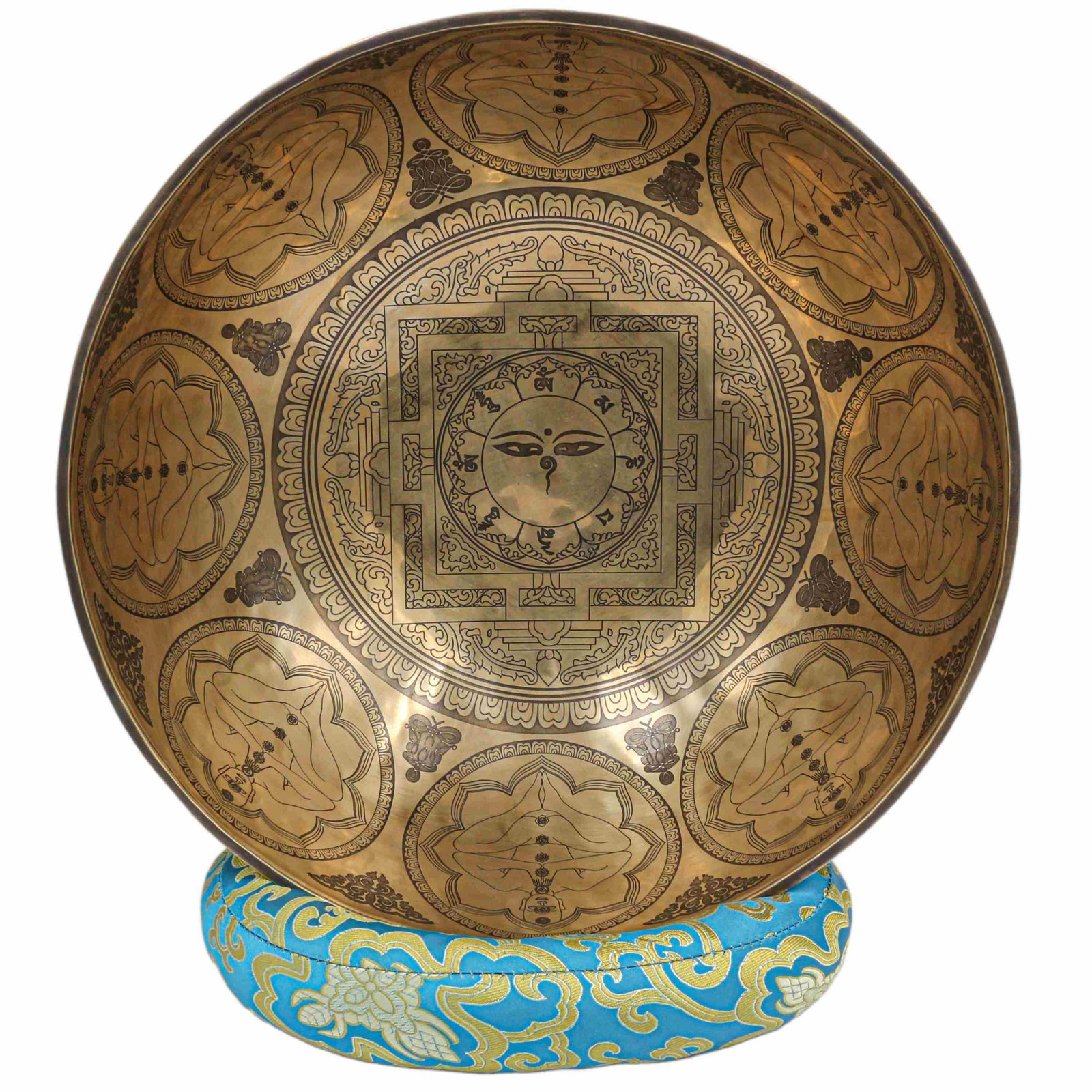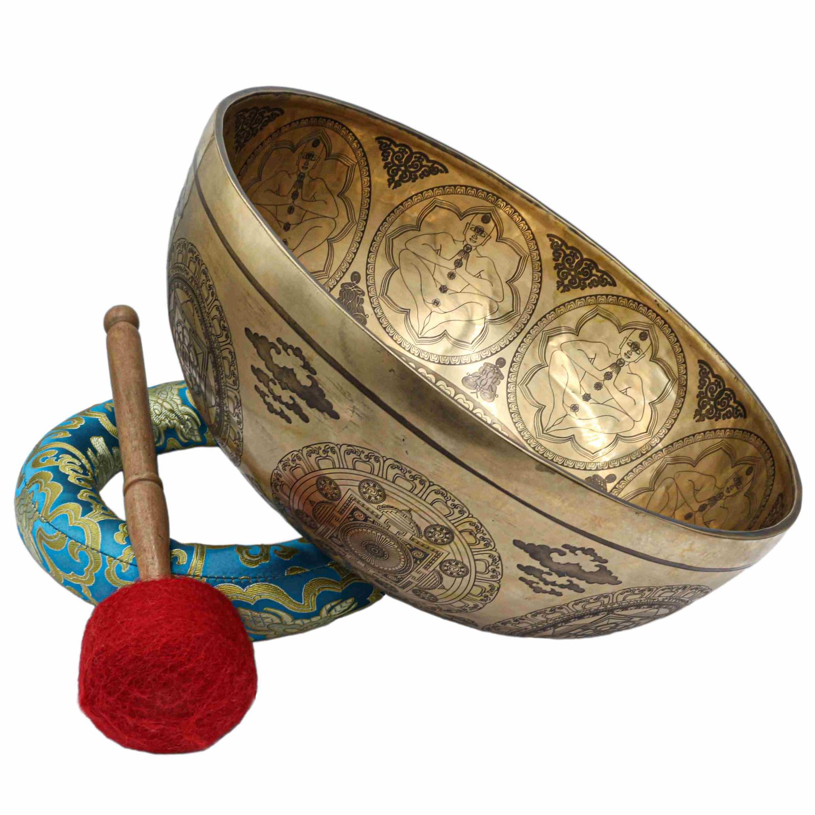 Buddhist Hand Beaten Jambati Singing Bowl, with Super Fine Etching Carving of Buddha Eye, Select Accessories |