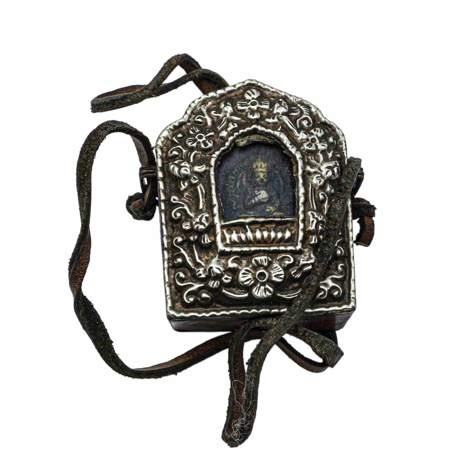 Buddhist Gau without Cover Small, with Flower Design and Jambhala In The Center with Cotton Cover