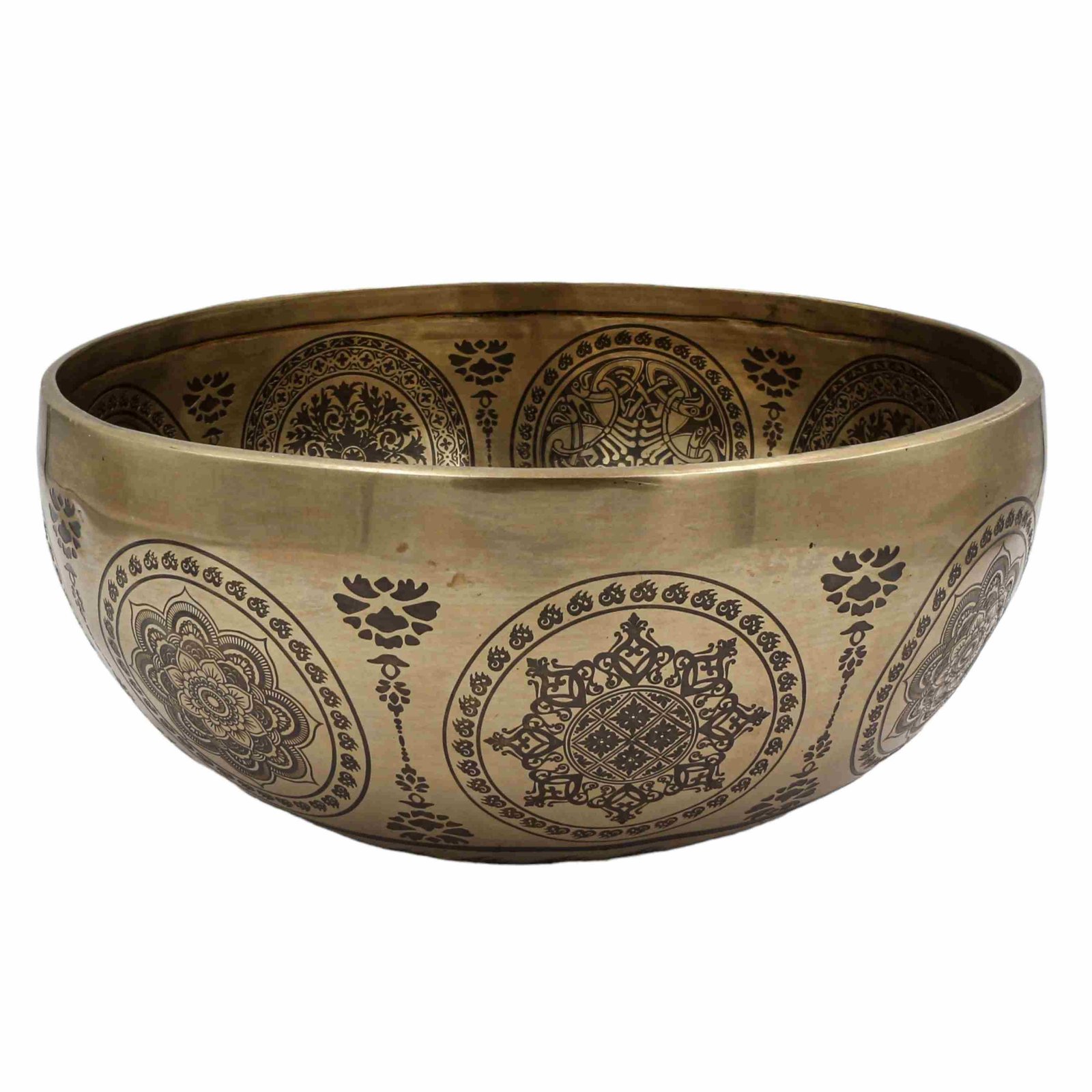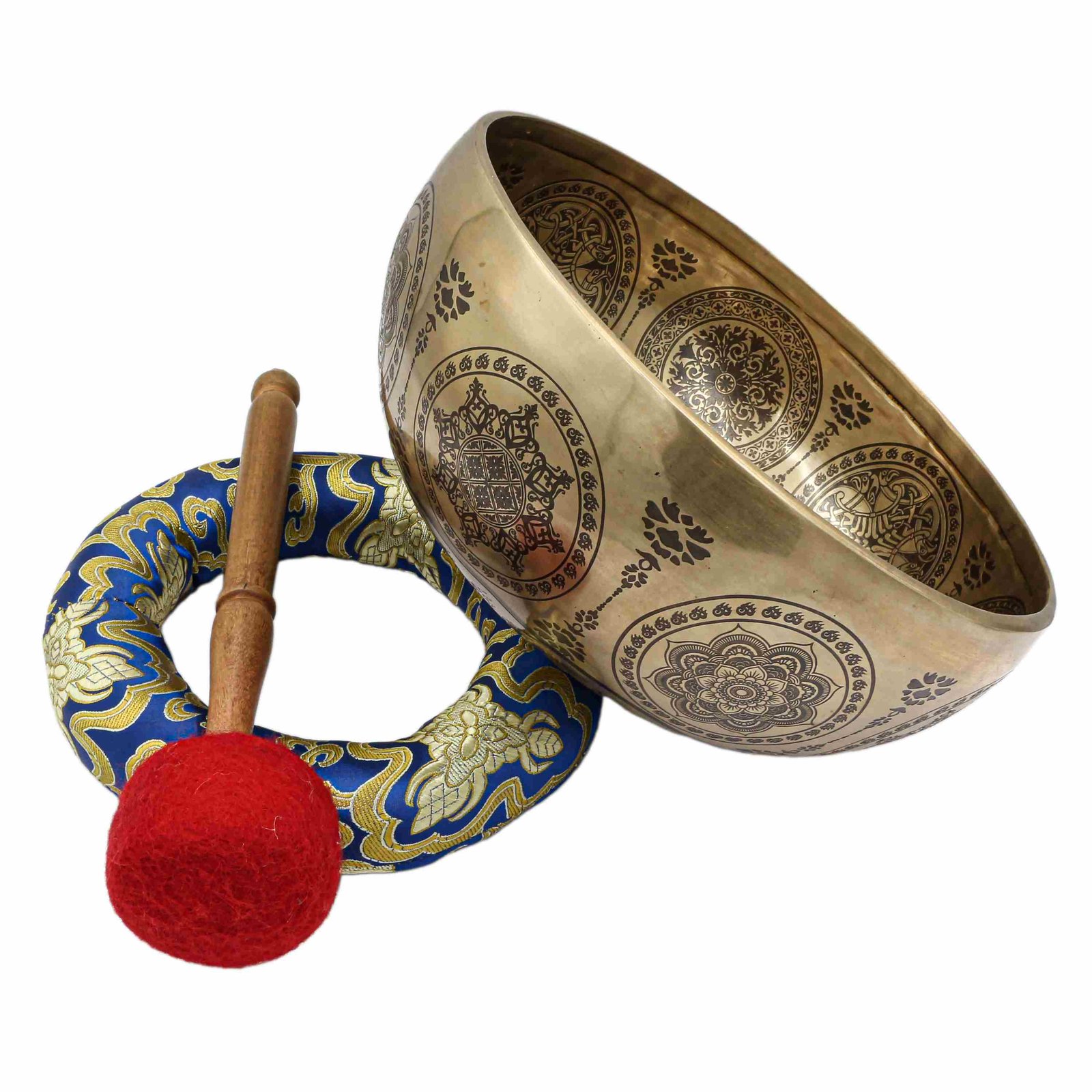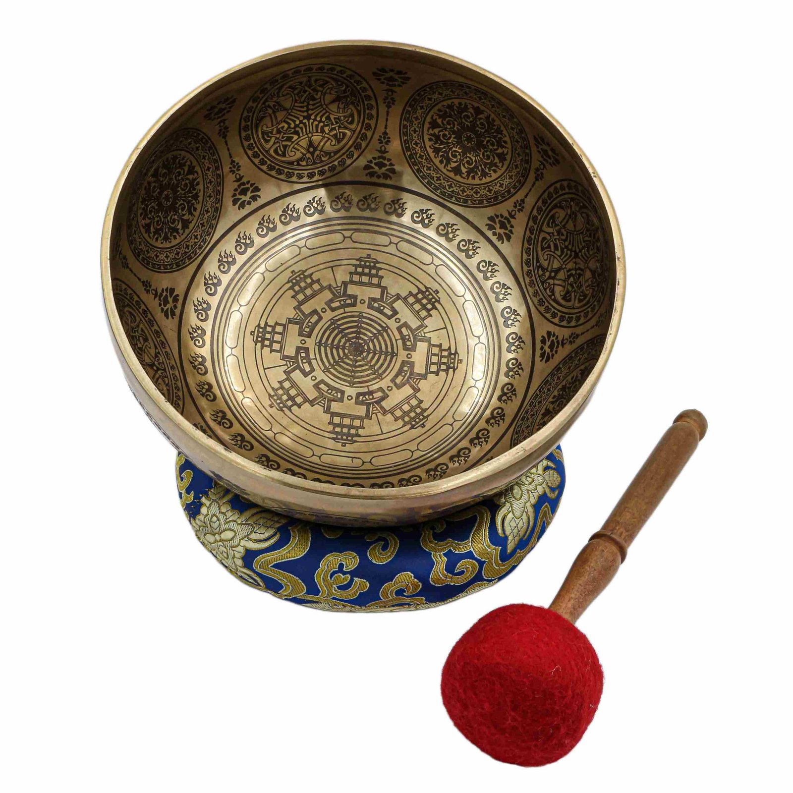 Buddhist Hand Beaten Jambati Singing Bowl, with Super Fine Etching Carving, Sri Yantra, Select Accessories |