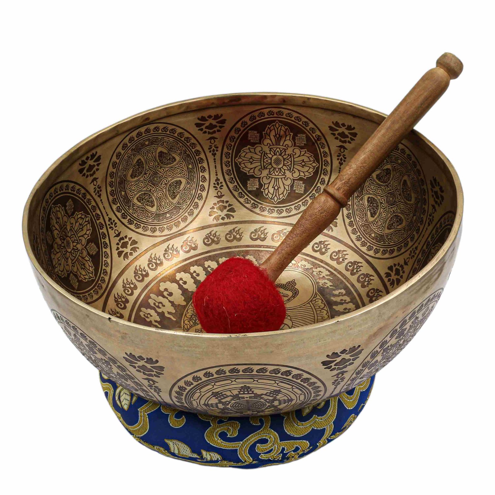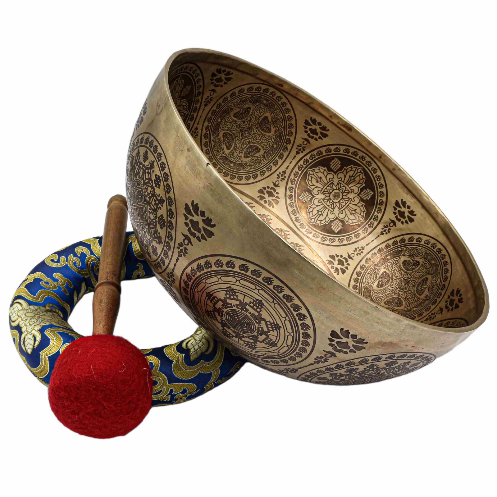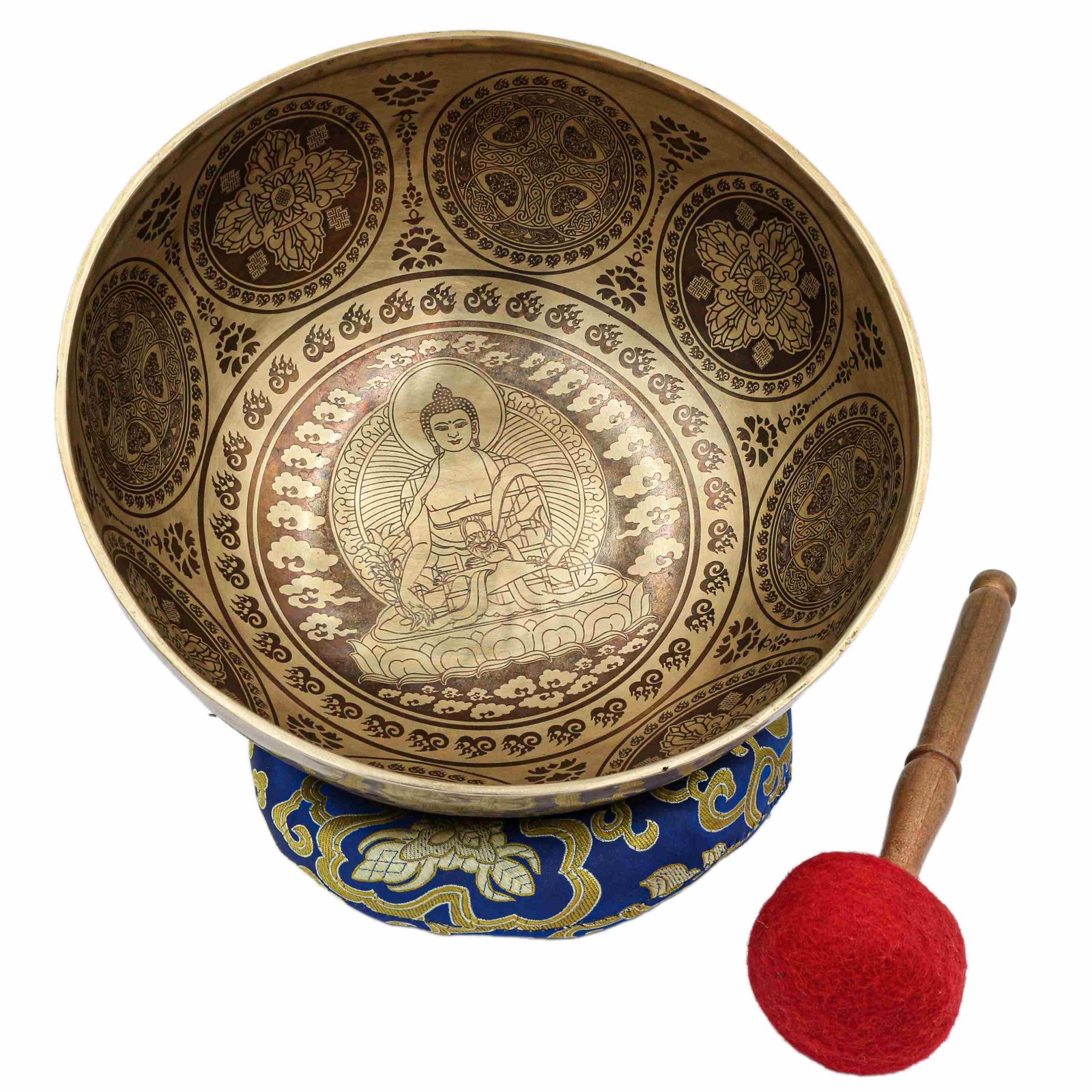 Buddhist Hand Beaten Jambati Singing Bowl, with Super Fine Etching Carving, Medicine Buddha, Select Accessories |