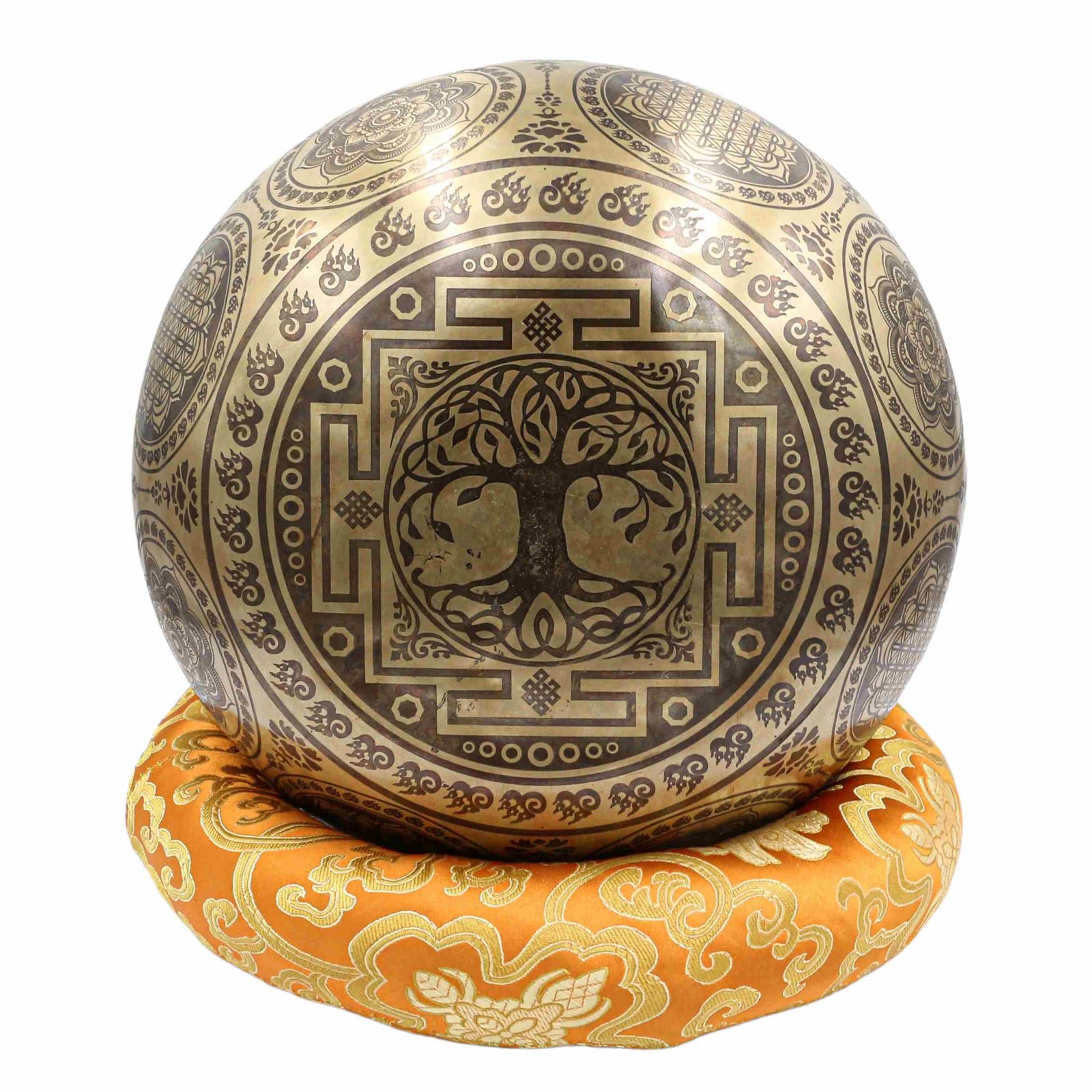 Buddhist Hand Beaten Jambati Singing Bowl, with Super Fine Etching Carving, Select Accessories |