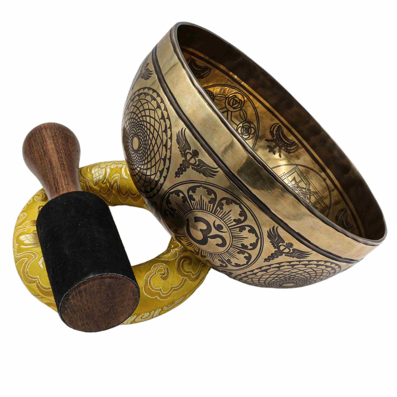 Buddhist Hand Beaten Jambati Singing Bowl, with Super Fine Etching Carving, Life of Tree, Select Accessories |