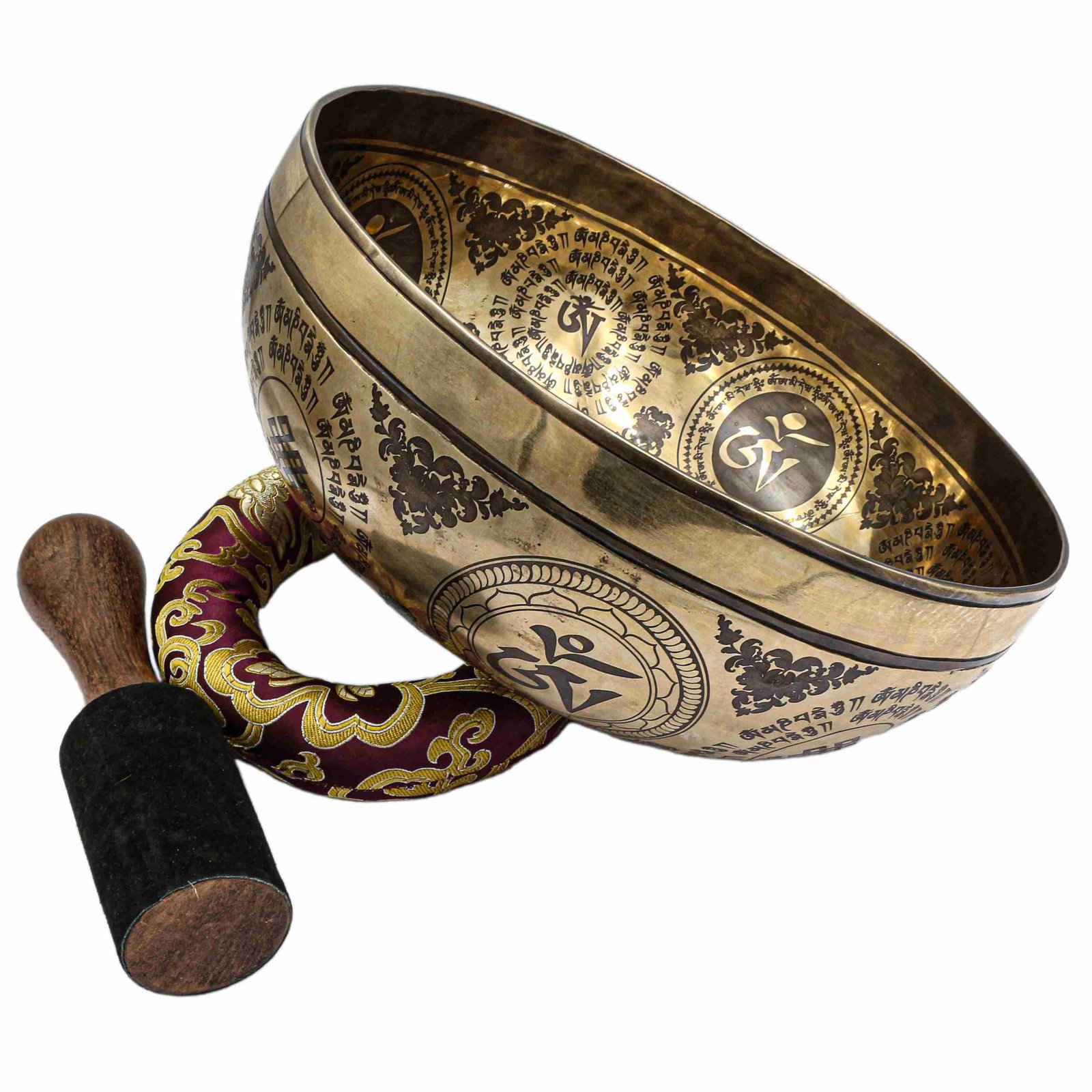 Buddhist Hand Beaten Jambati Singing Bowl, with Super Fine Etching Carving, Select Accessories |